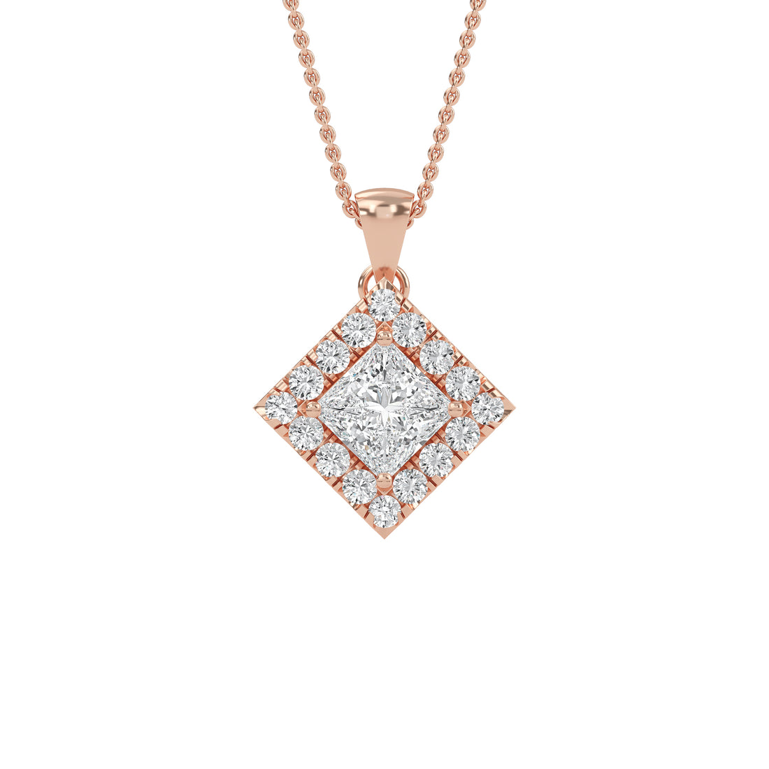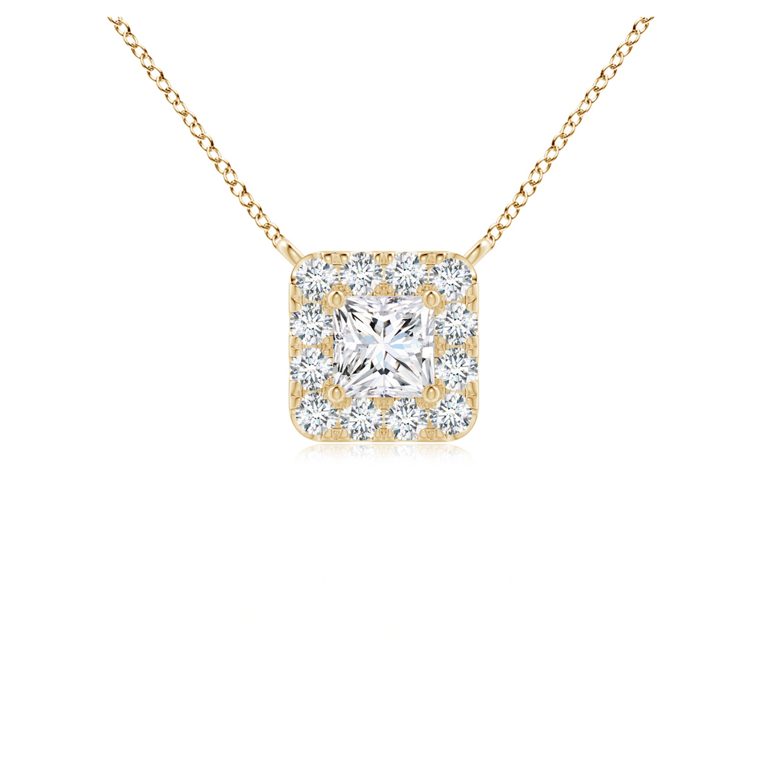 Princess-Cut Diamond Halo Pendant with Chain