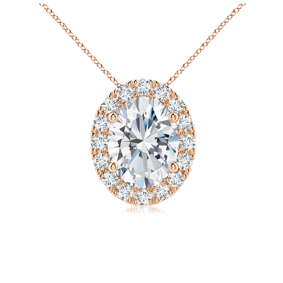 Oval Diamond Halo Pendant with Chain