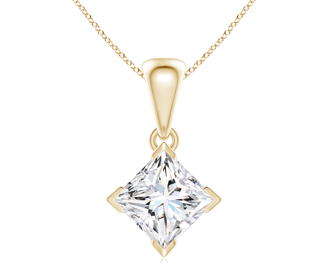 This elegant solitaire pendant features a stunning lab-grown princess-cut diamond, radiating a captivating sparkle. Simple...