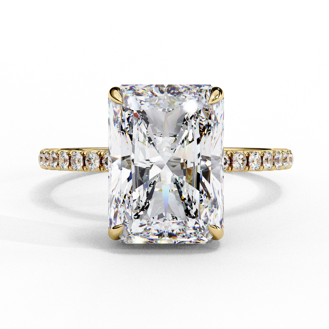 Experience glamour with this radiant solitaire ring, complete with pave detailing. Featuring a 0.8ct center...