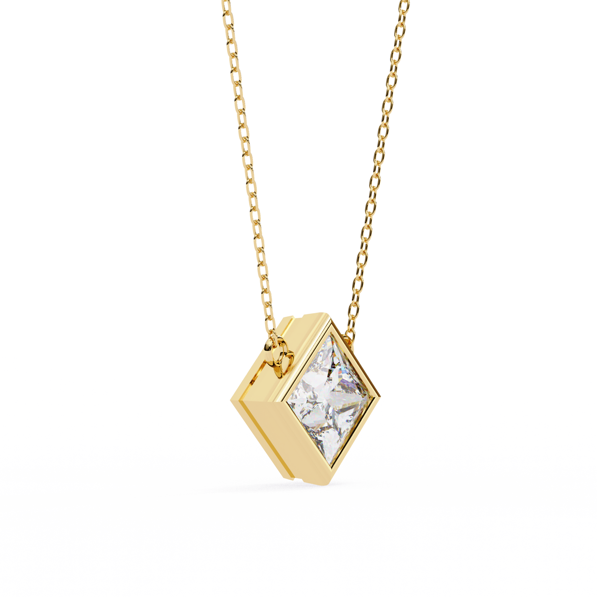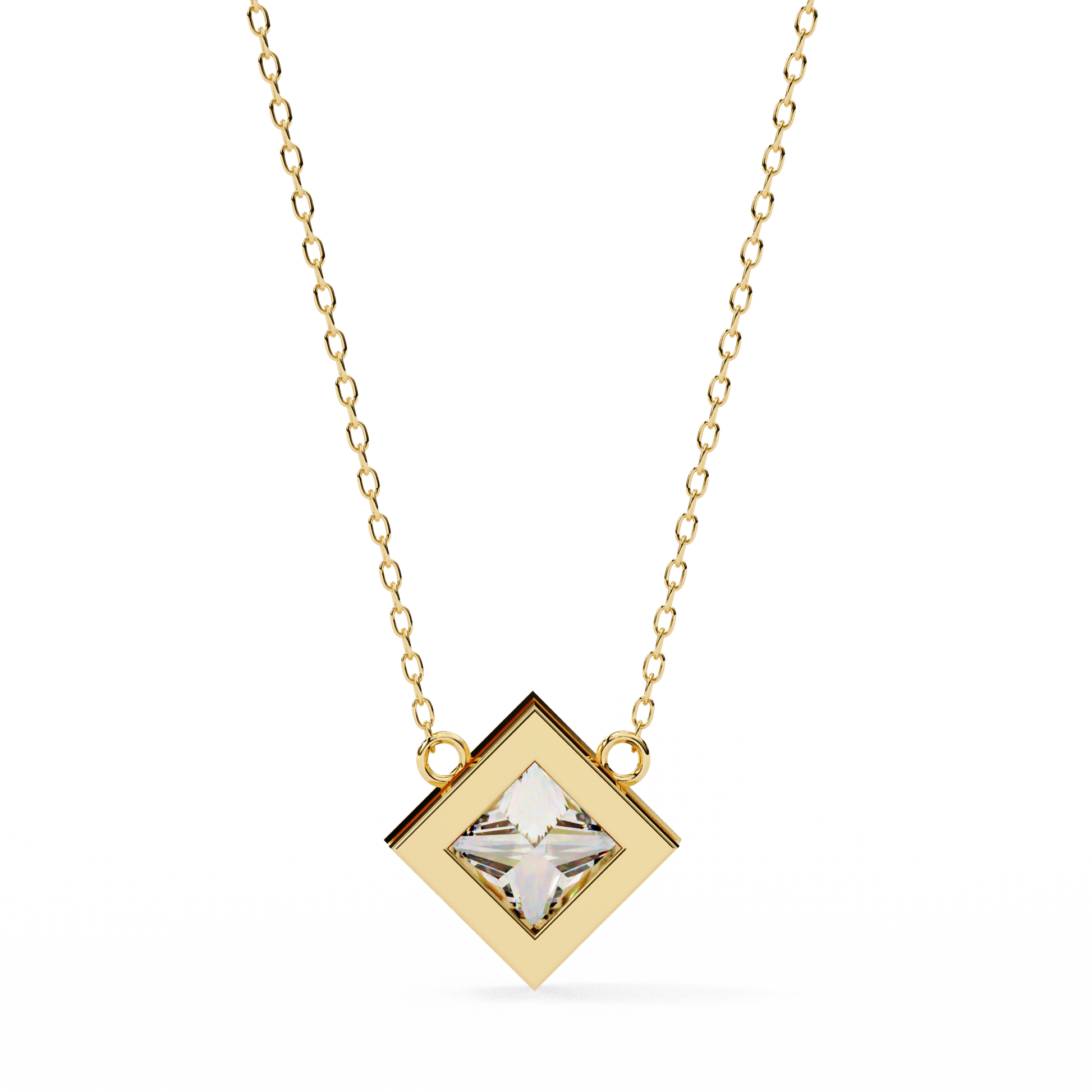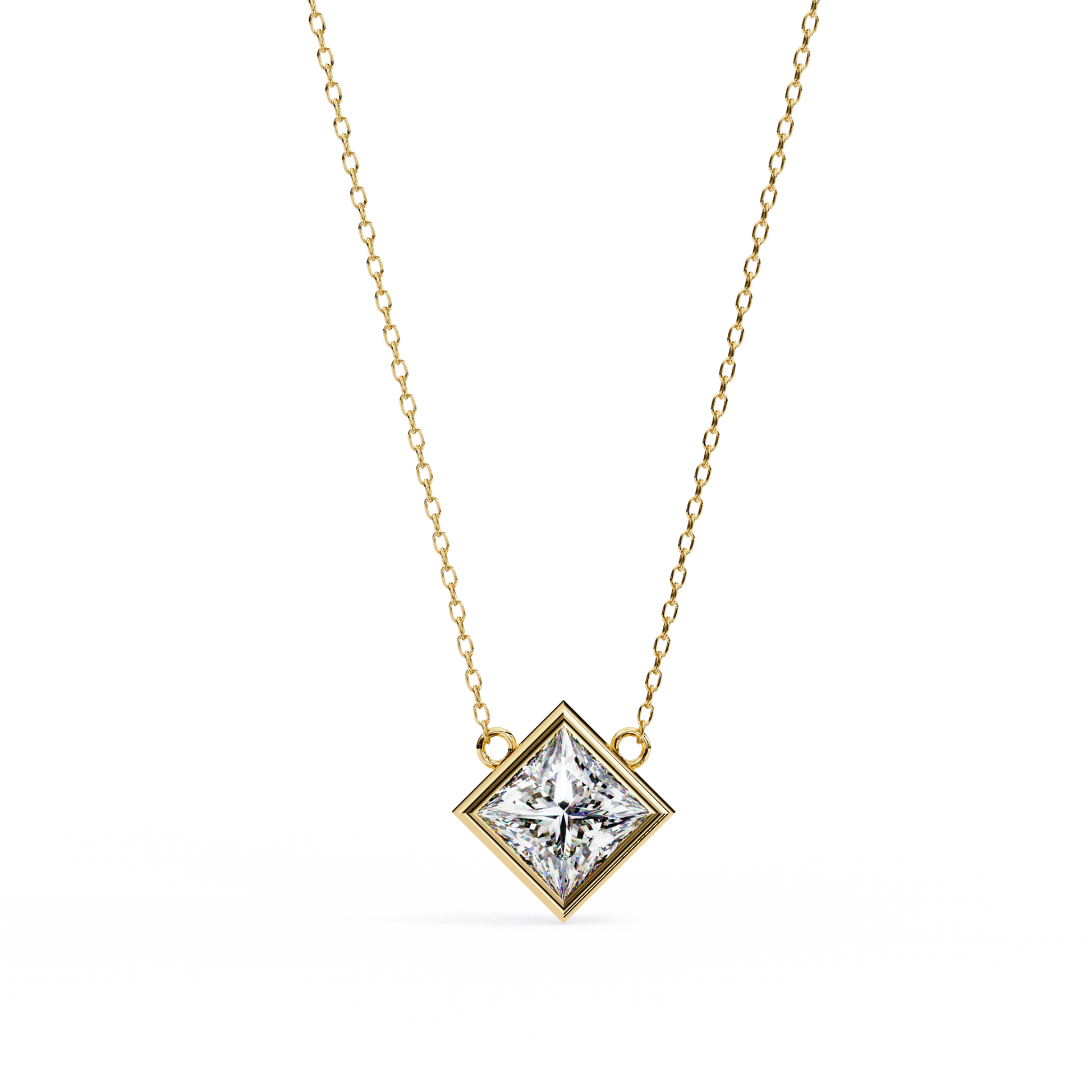 Embrace minimalist style with this bezel-set diamond necklace. Featuring a brilliant 0.5ct center stone set in gold, this necklace offers a sleek and sophisticated sparkle.