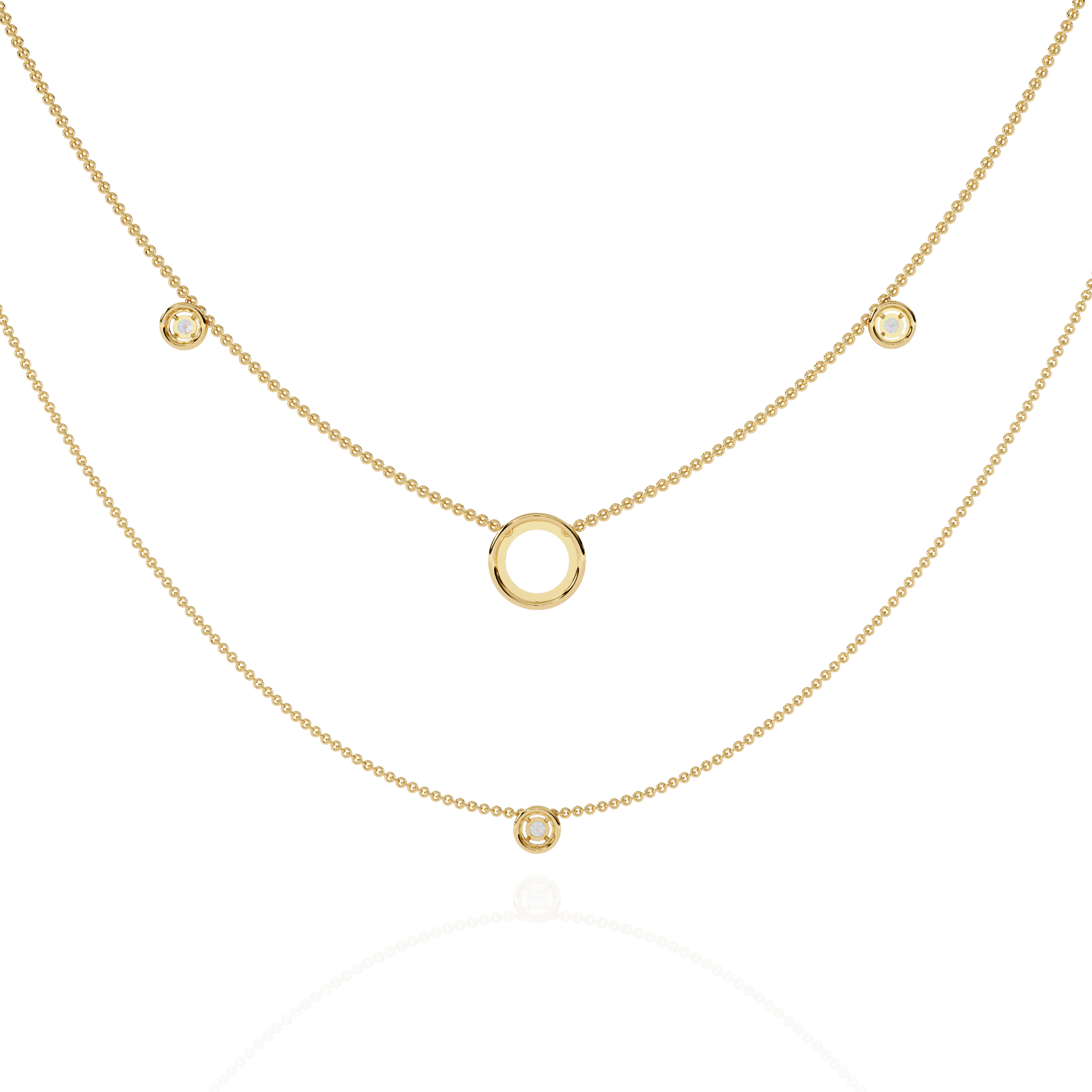 Embrace delicate beauty with this dainty gold three-strand necklace, featuring a circle design. Crafted in 14k gold with VVS-EF diamond quality, this necklace offers a subtle and elegant sparkle.