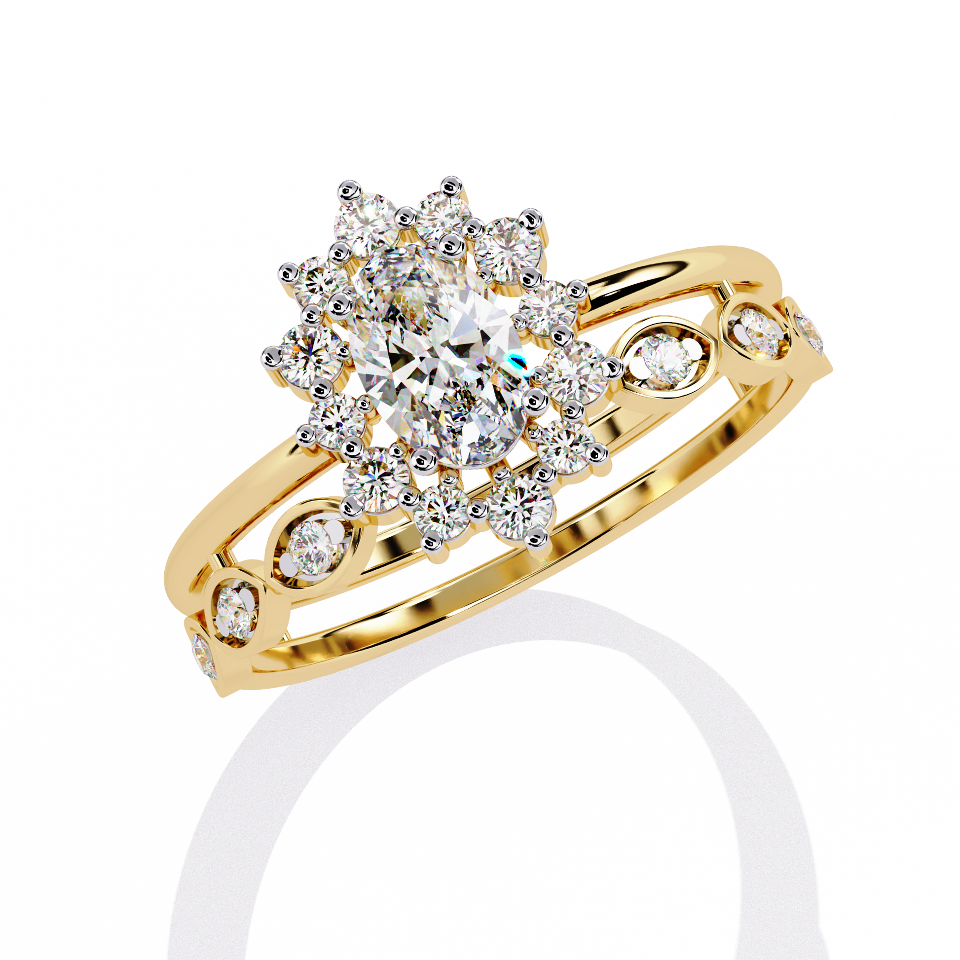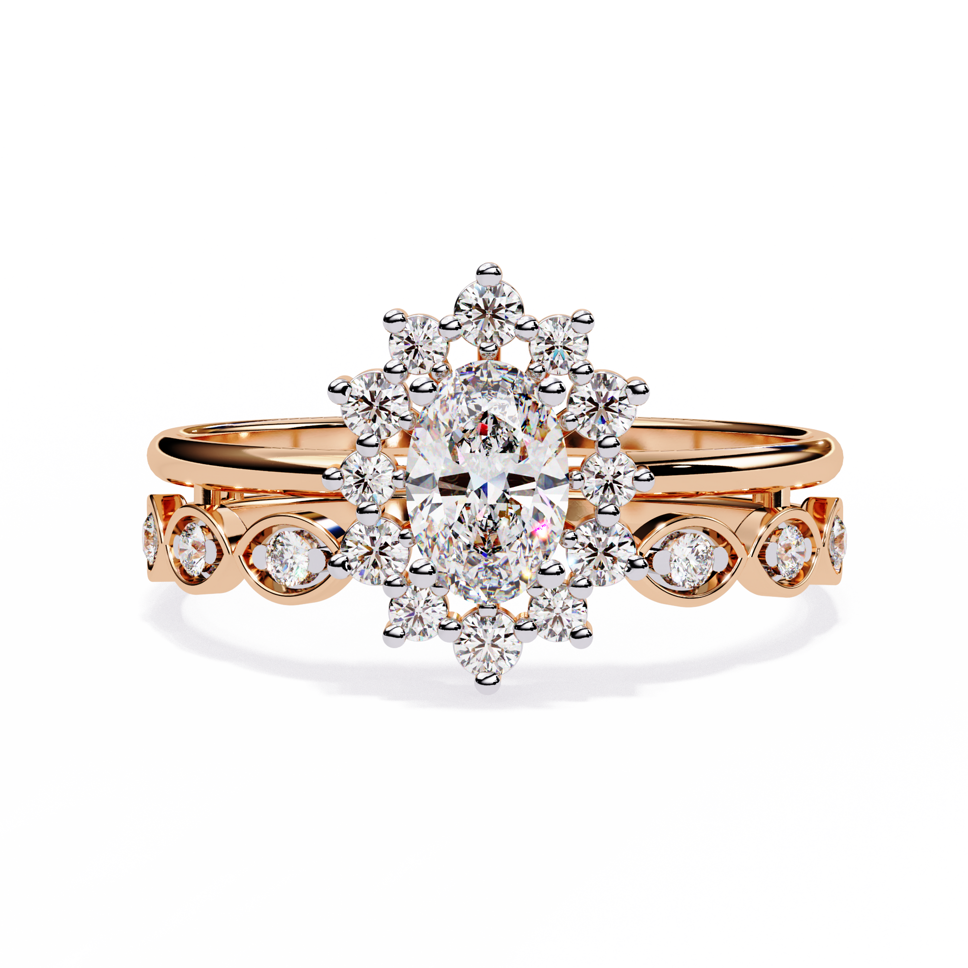 Evoke lasting elegance with this band, combining classic charm and subtle shimmer. It highlights an oval solitaire diamond set in 14k gold, adding an exquisite touch of grace to your ensemble.