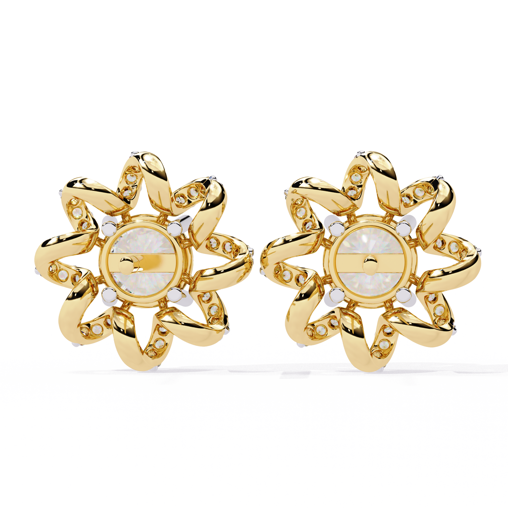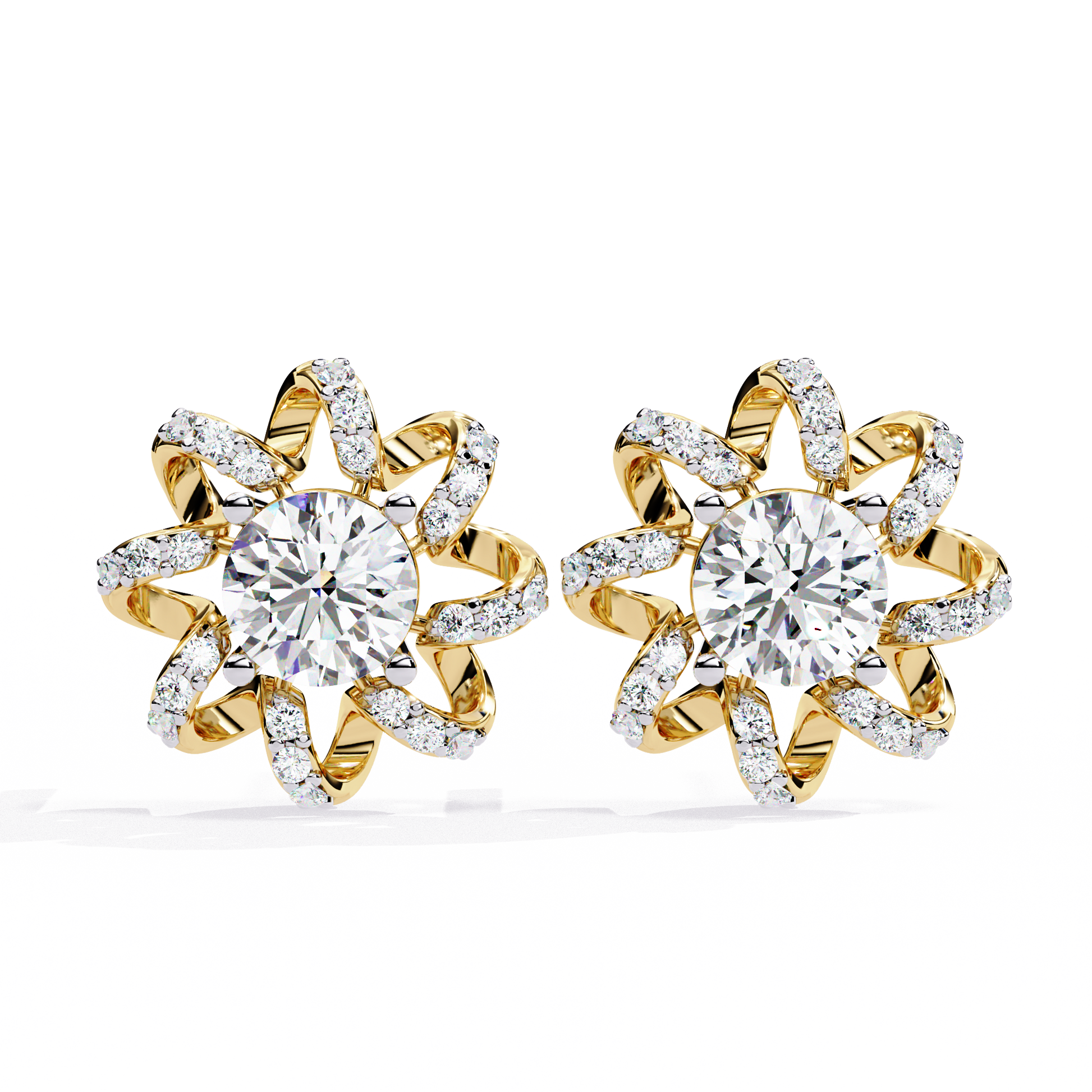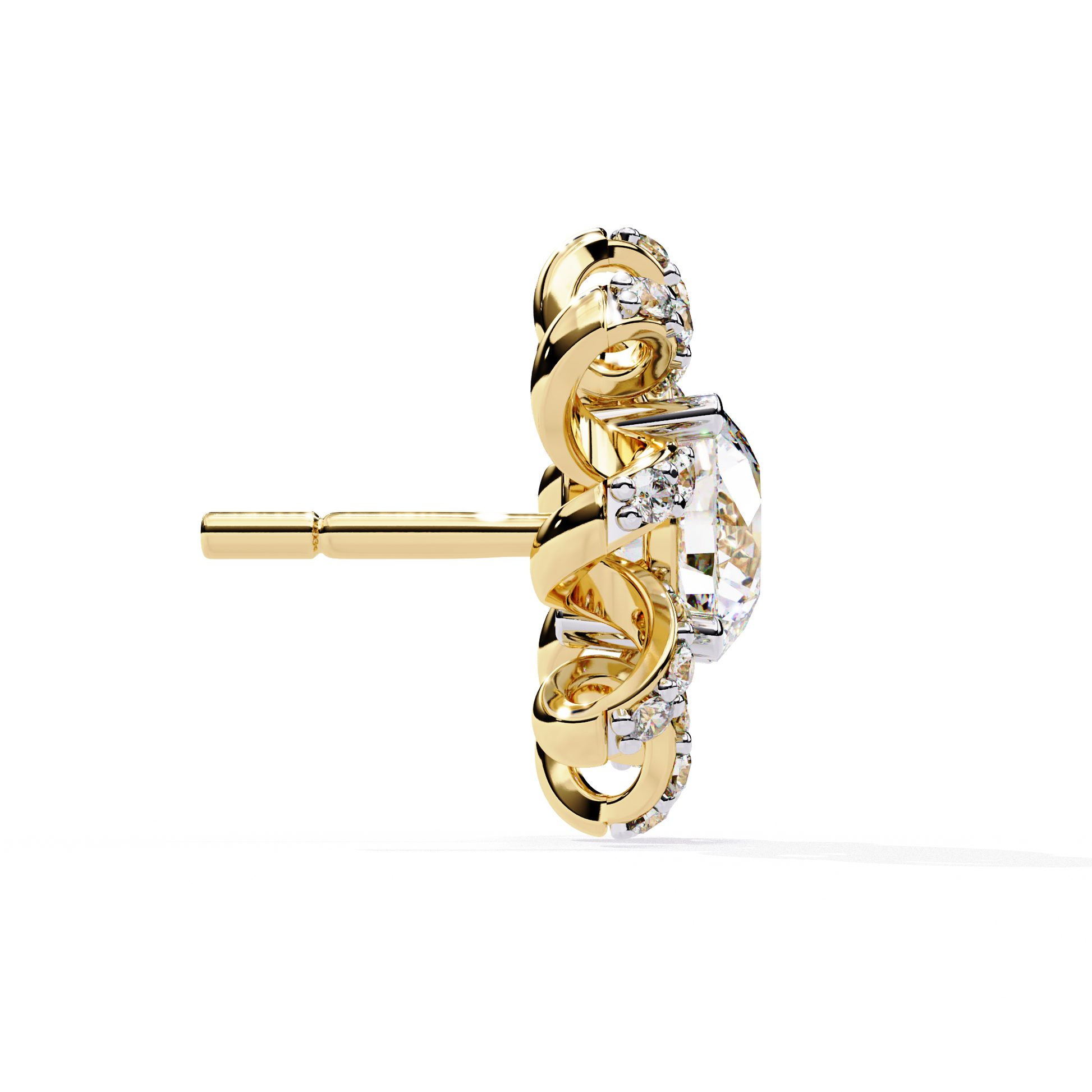 Elevate your style with these designer-inspired diamond studs. Each earring features a brilliant 0.5ct center stone set in gold, creating a timeless and sophisticated look.
