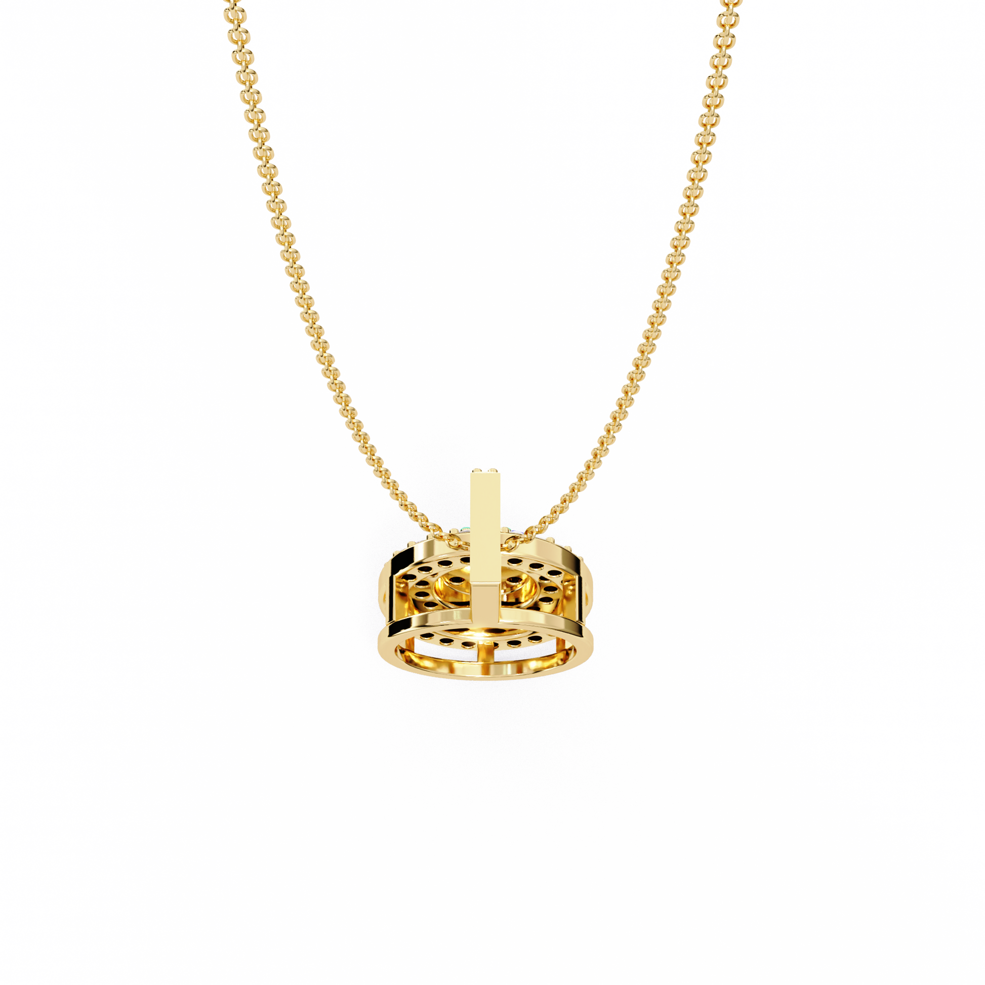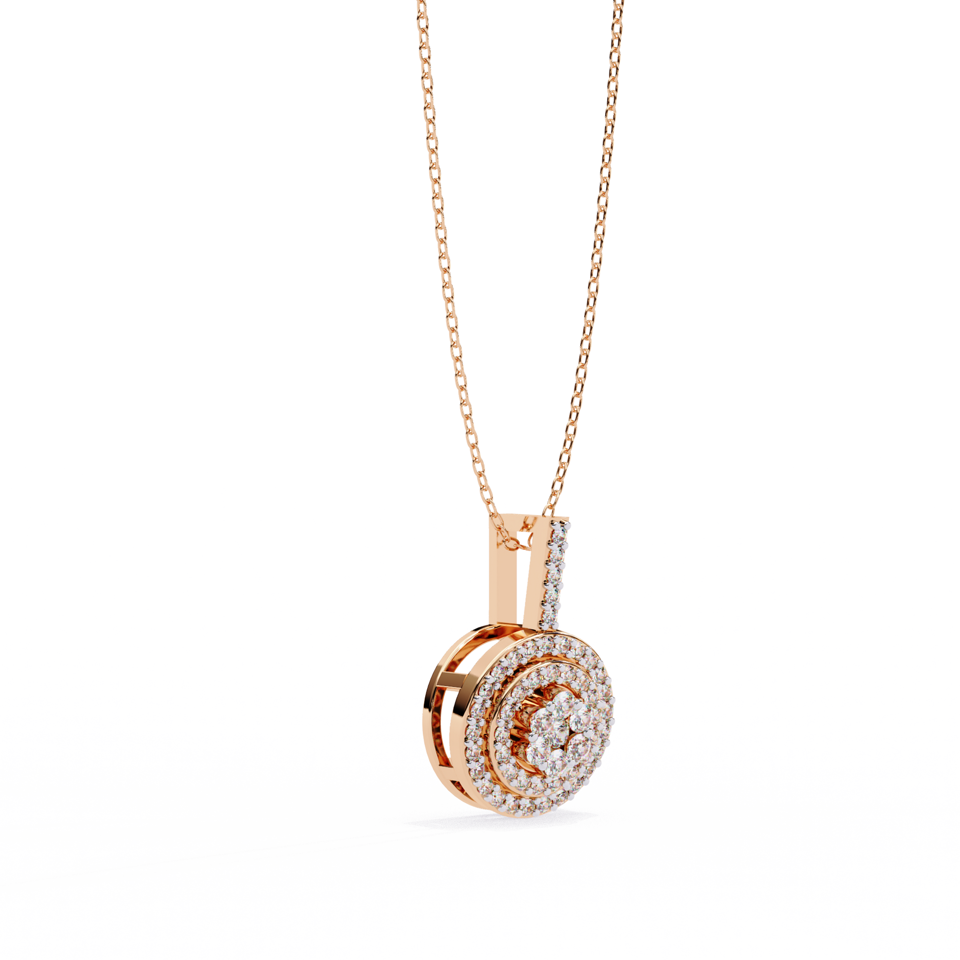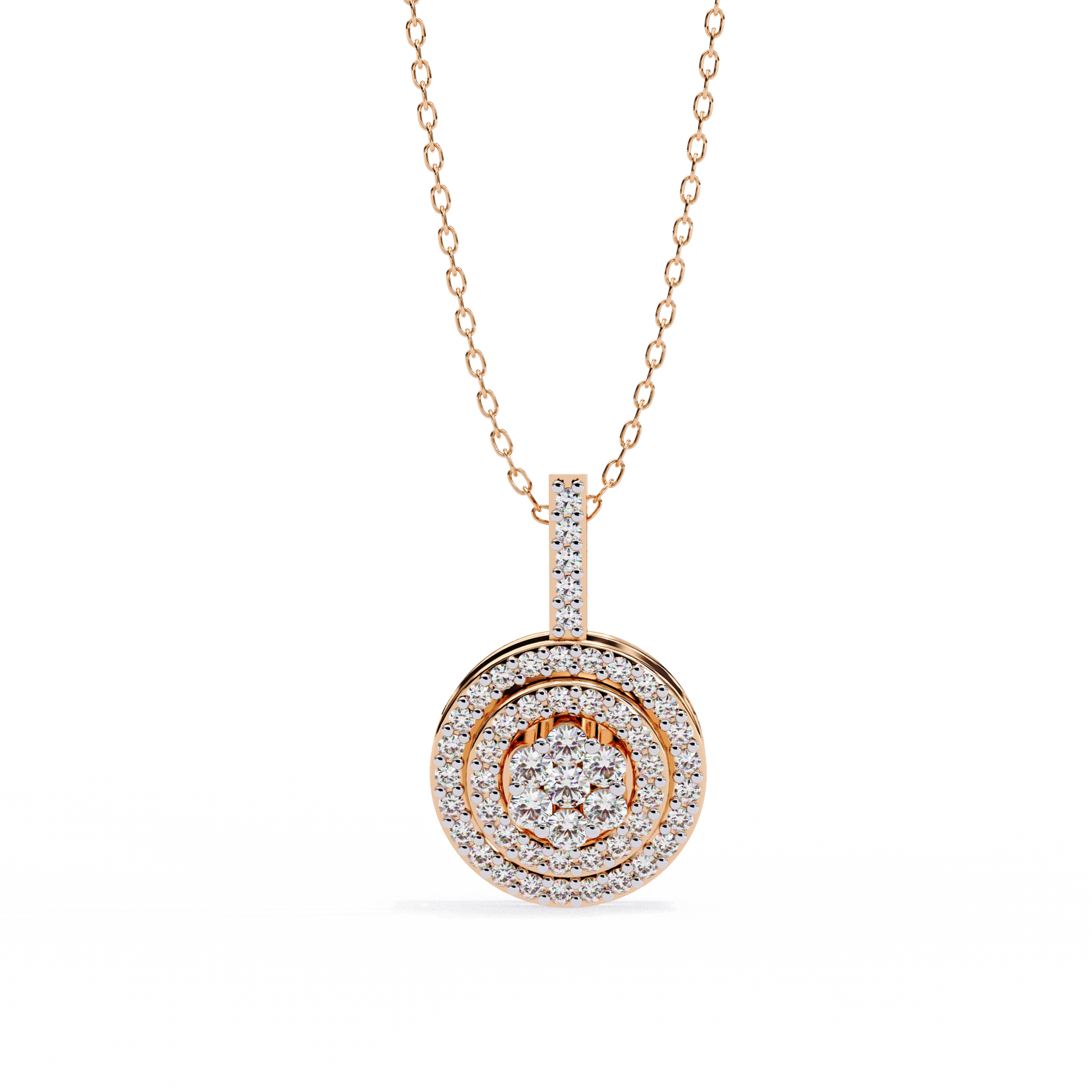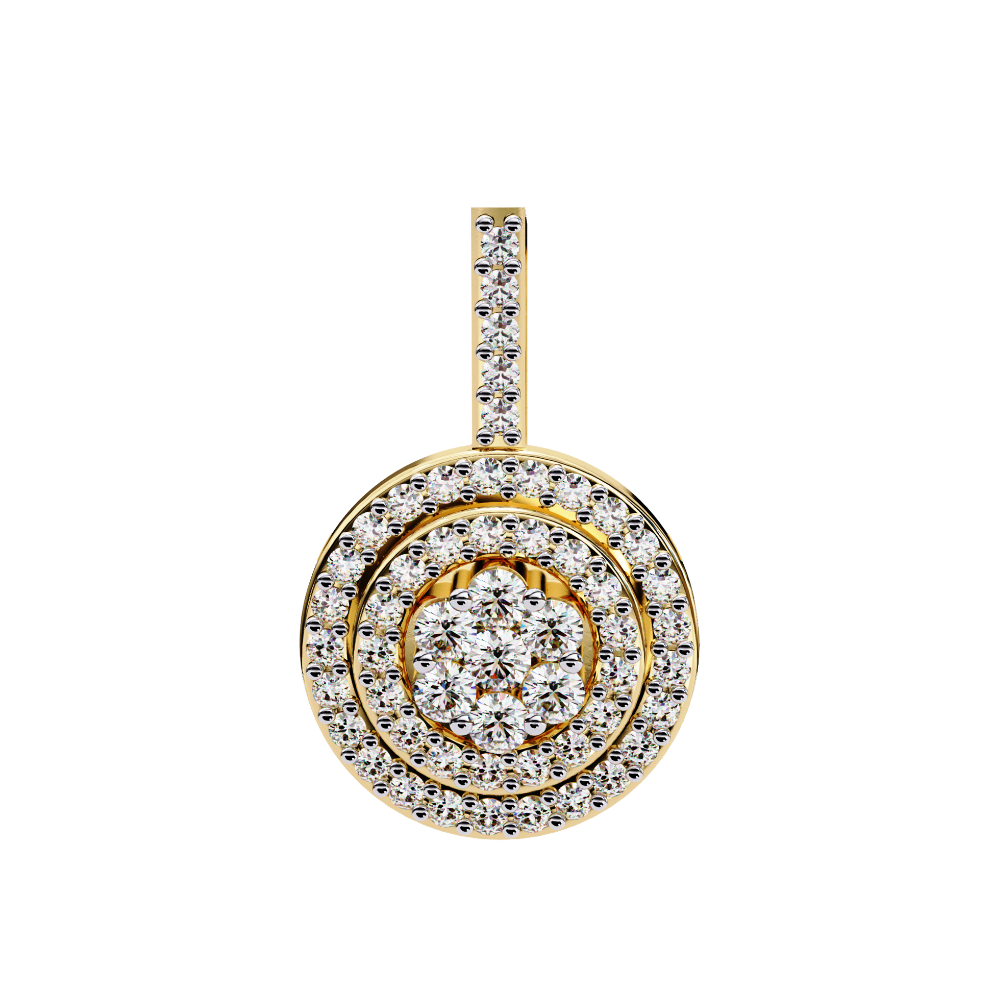 Elevate your elegance with this double-halo diamond circle pendant. Crafted in gold with VVS-EF diamond quality, this pendant offers a radiant and sophisticated sparkle.