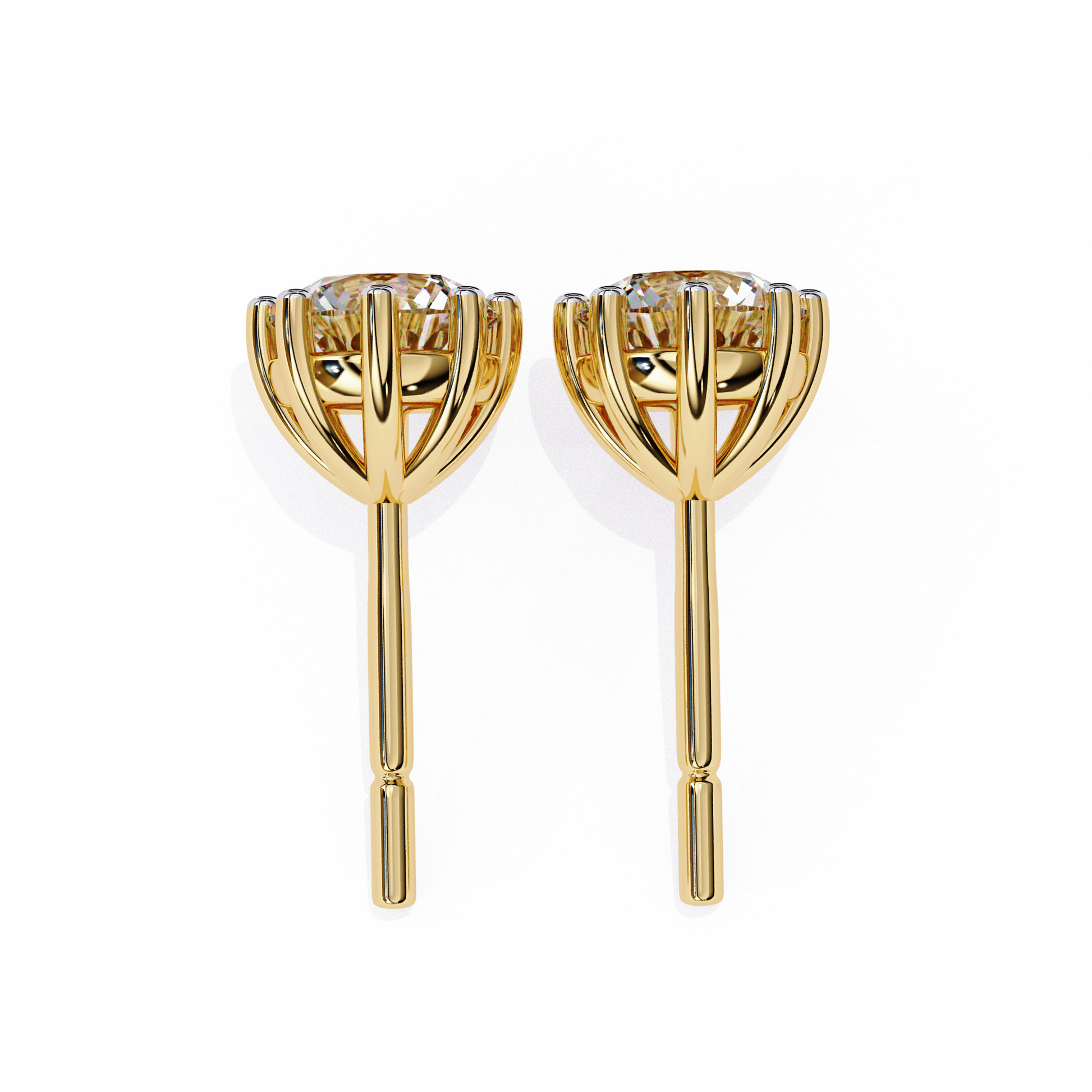 Experience classic elegance with these eight-prong set diamond studs. Each earring features a brilliant Solitaire set in gold, creating a timeless and sophisticated look.