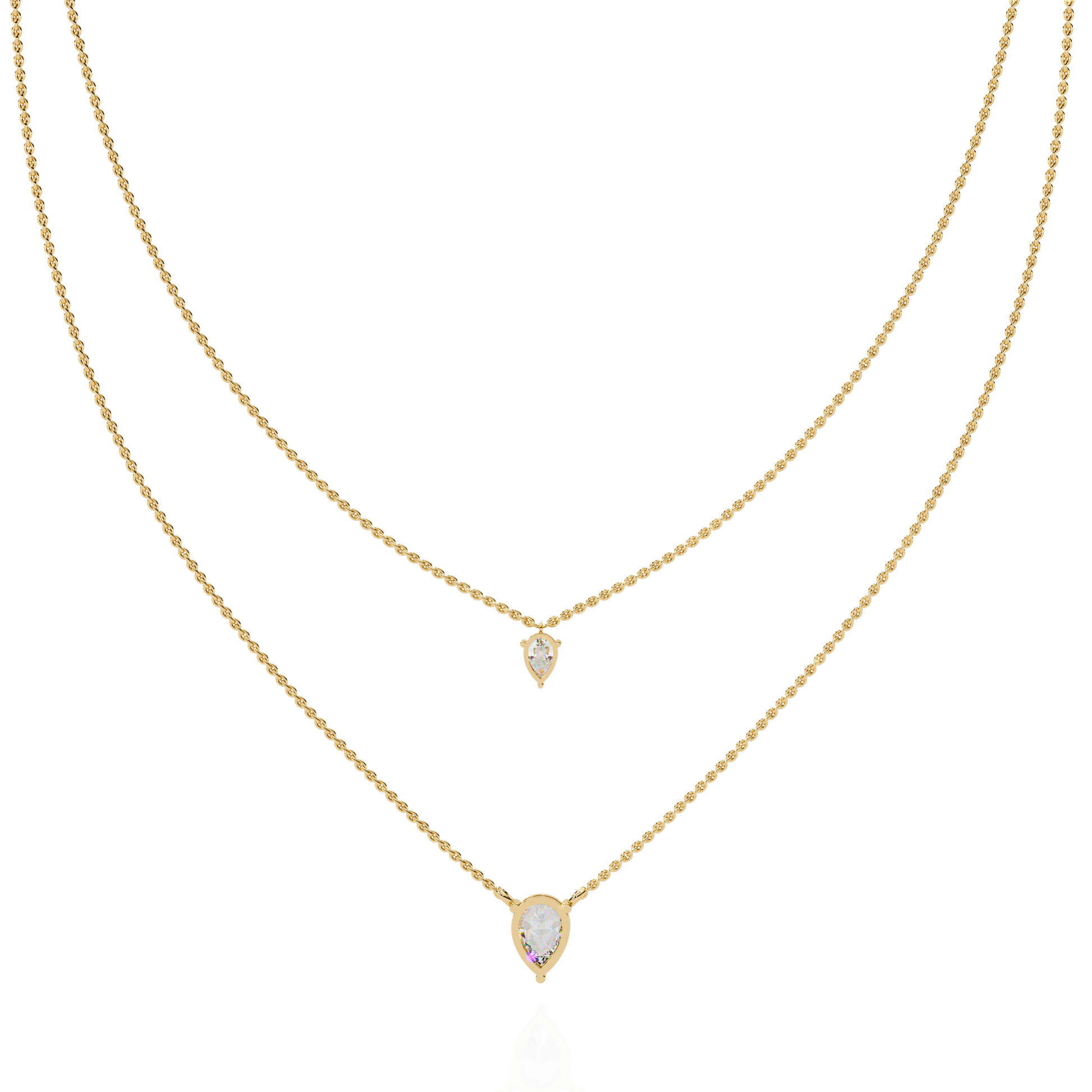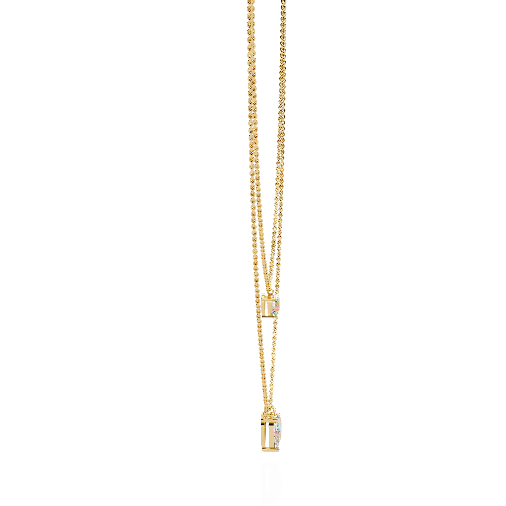 Experience elegance with this layered necklace, featuring gold chains and diamond drops. Crafted in 14k gold with VVS-EF diamond quality, this necklace offers a sophisticated and radiant sparkle.