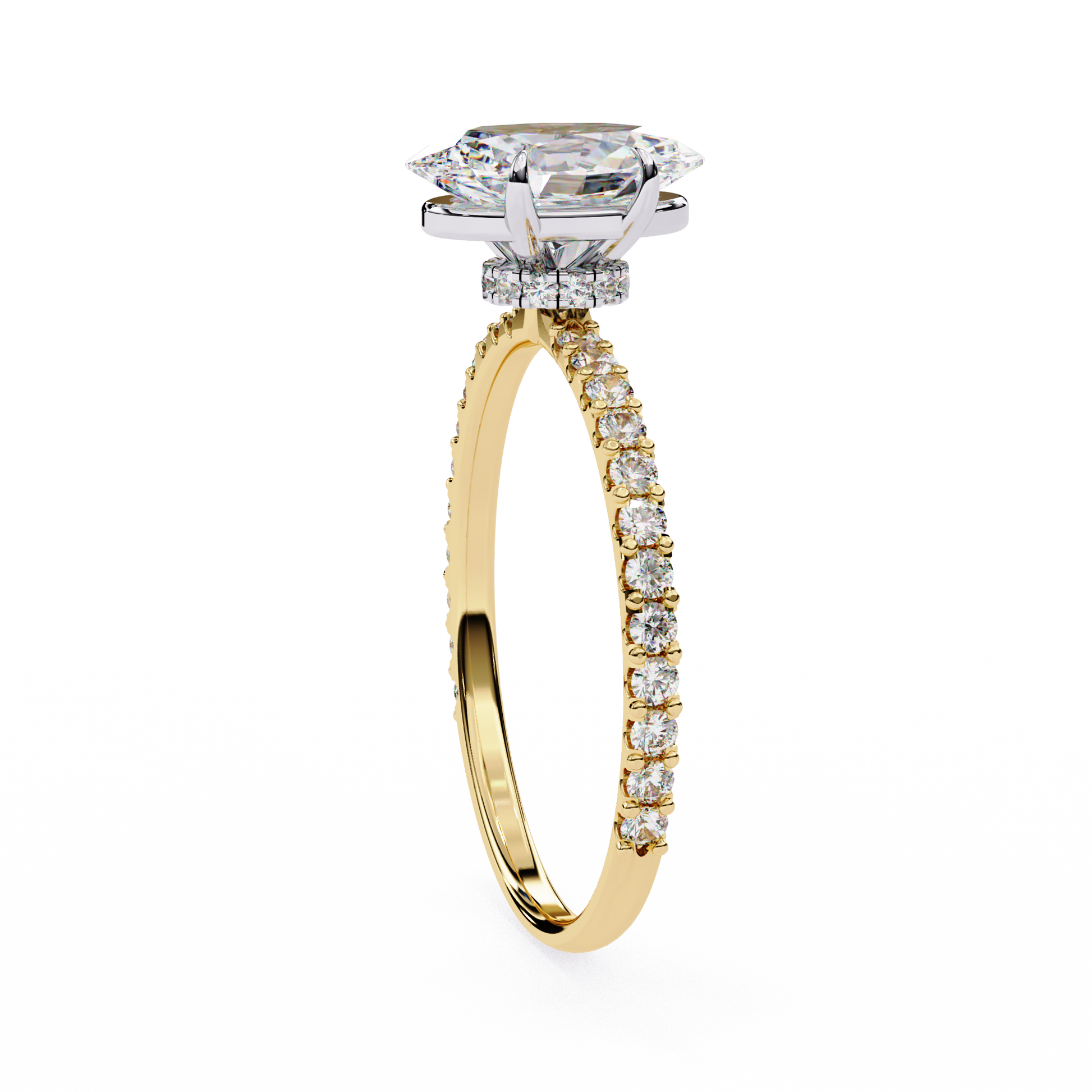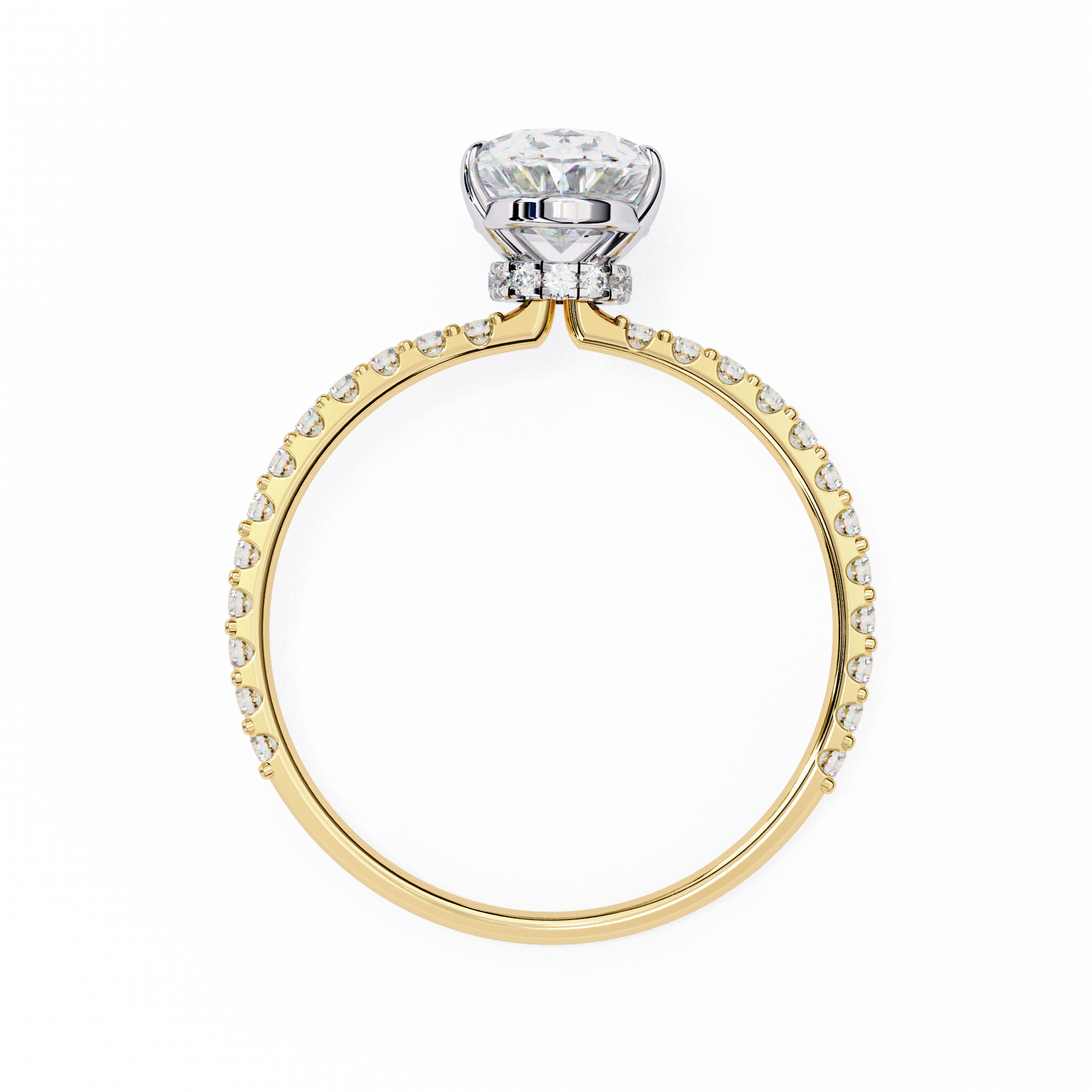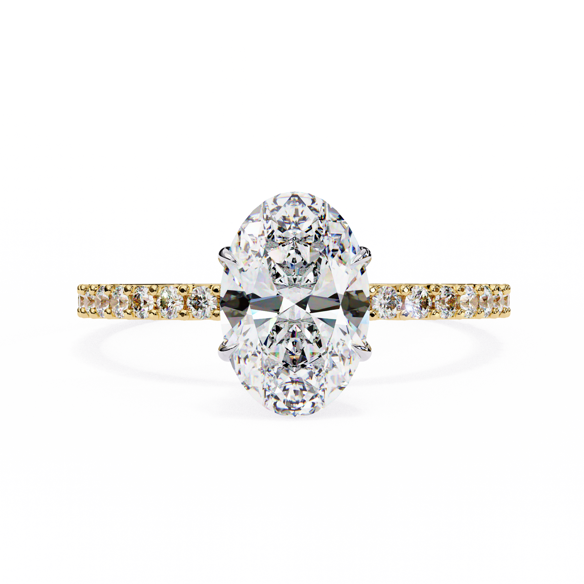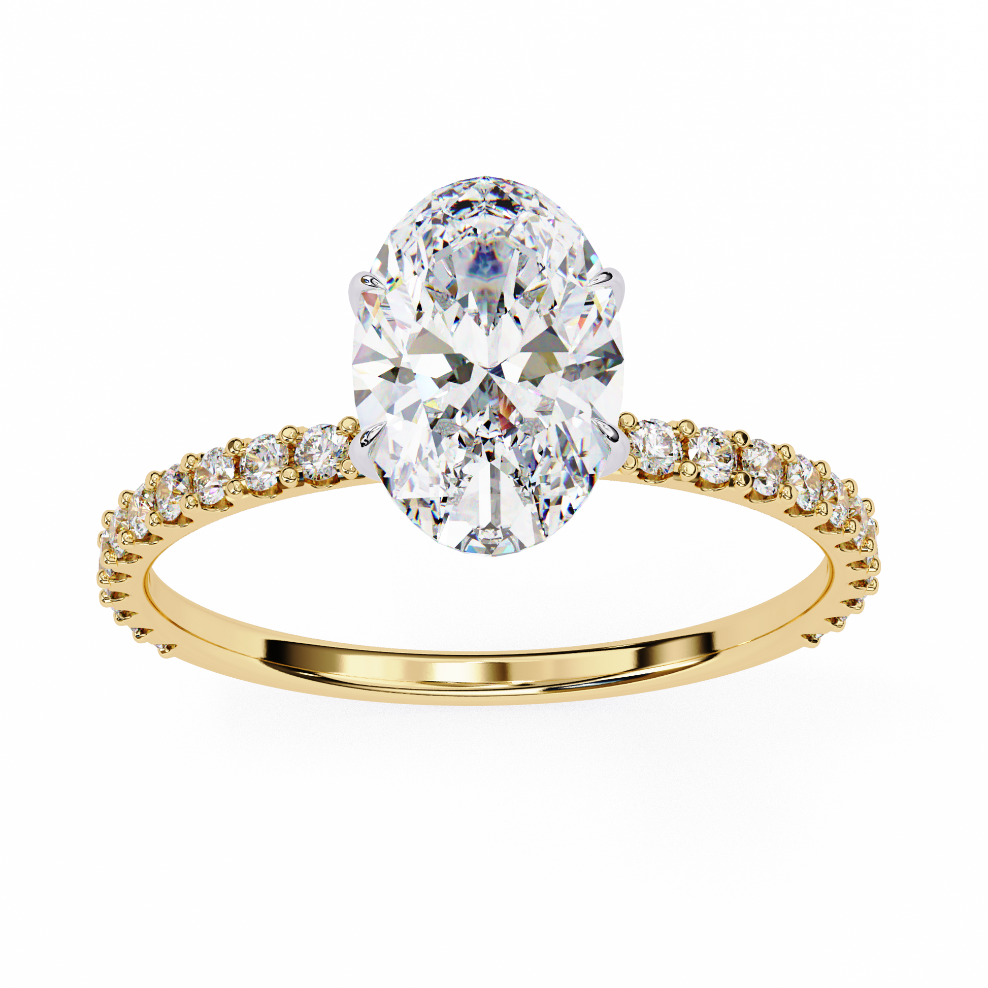 Embrace everlasting elegance with this oval-solitaire diamond ring with pave band, featuring Solitaire. This gold ring will be a dazzling, refined symbol of love.
