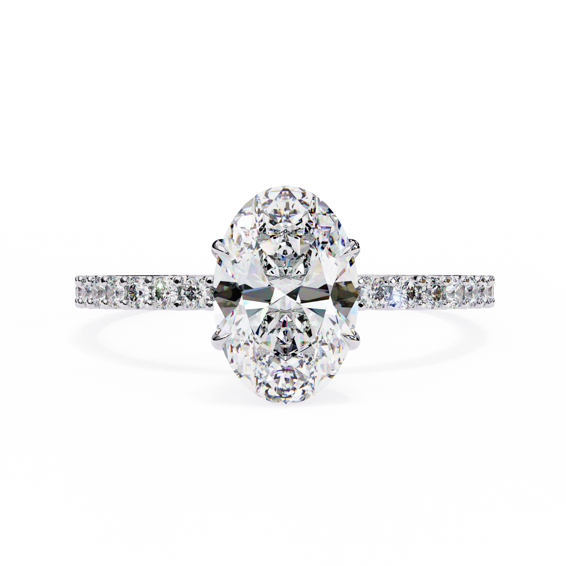 Elegant Oval Solitaire Diamond Ring with Pave Band