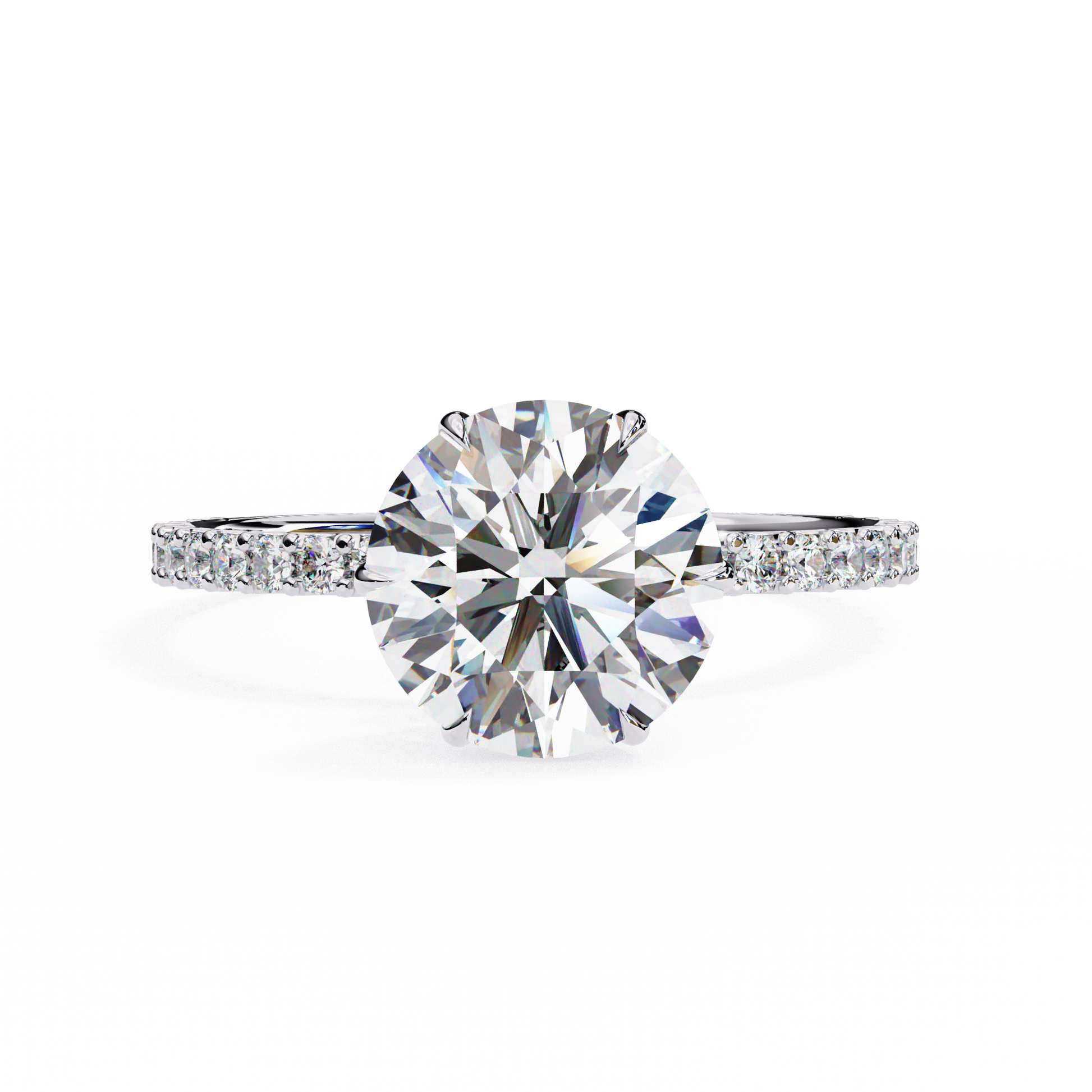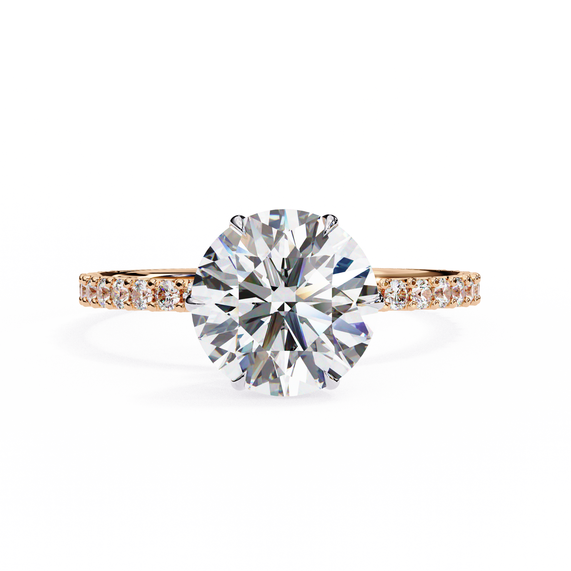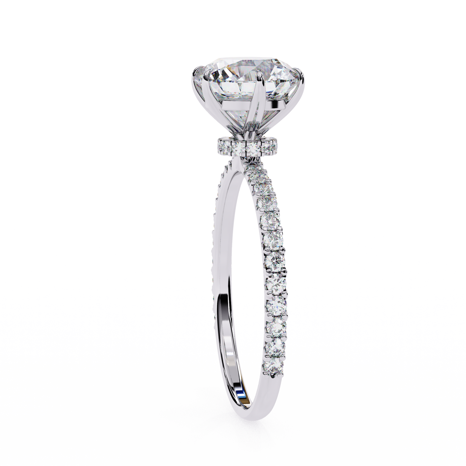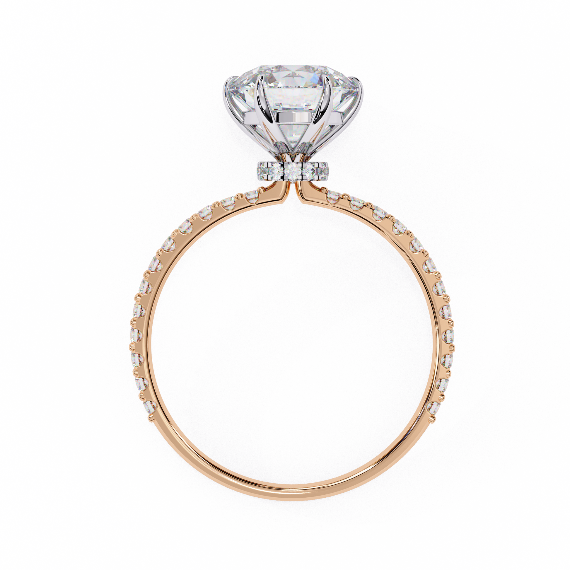 Elegant Round Solitaire Diamond Ring with Pave Band
