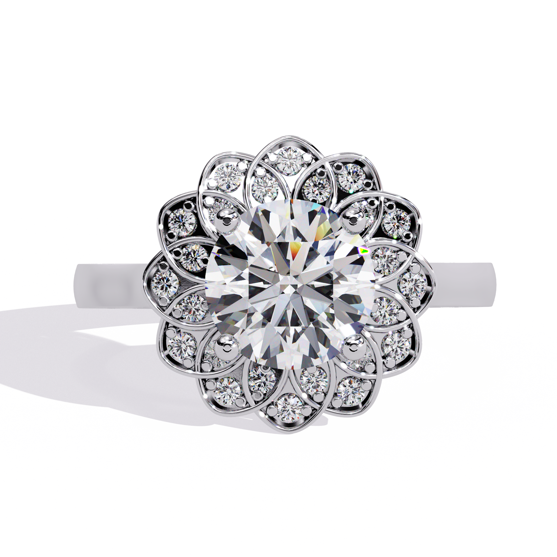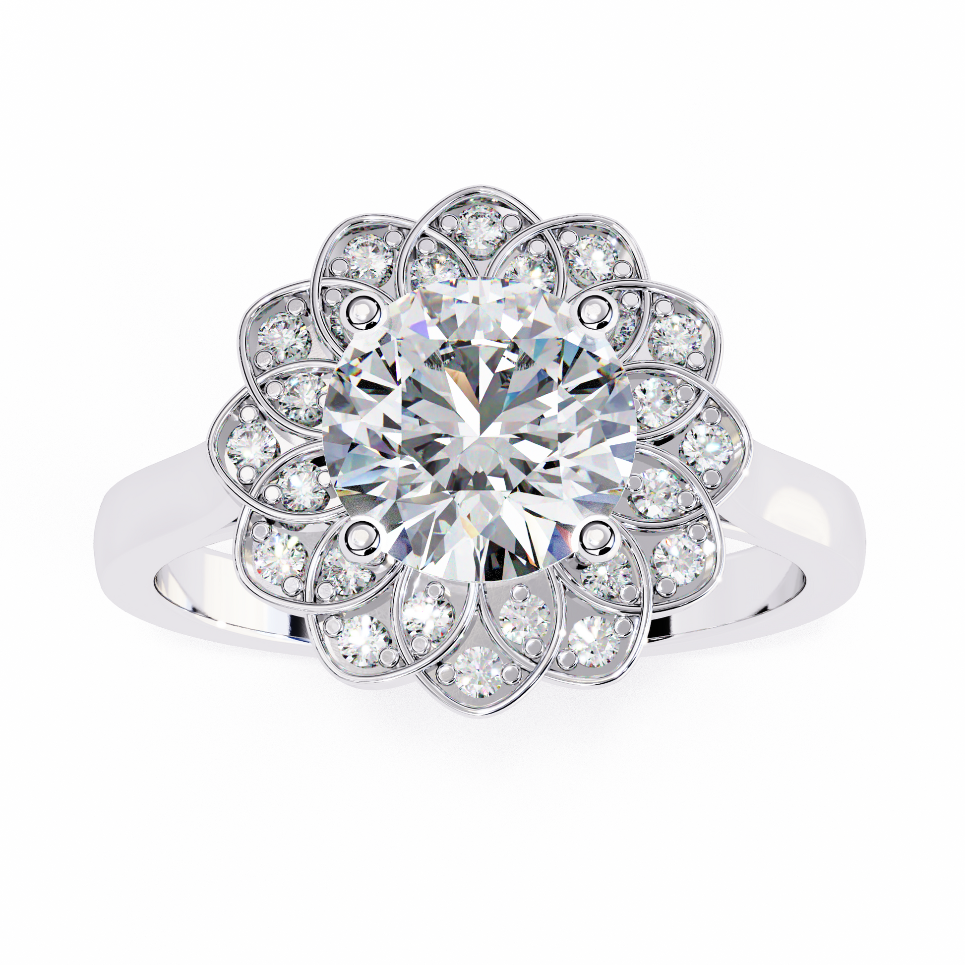 Celebrate romance with this exquisite floral halo engagement ring. Crafted in gold with diamond, this ring offers a delicate and radiant sparkle, perfect for symbolizing your love.