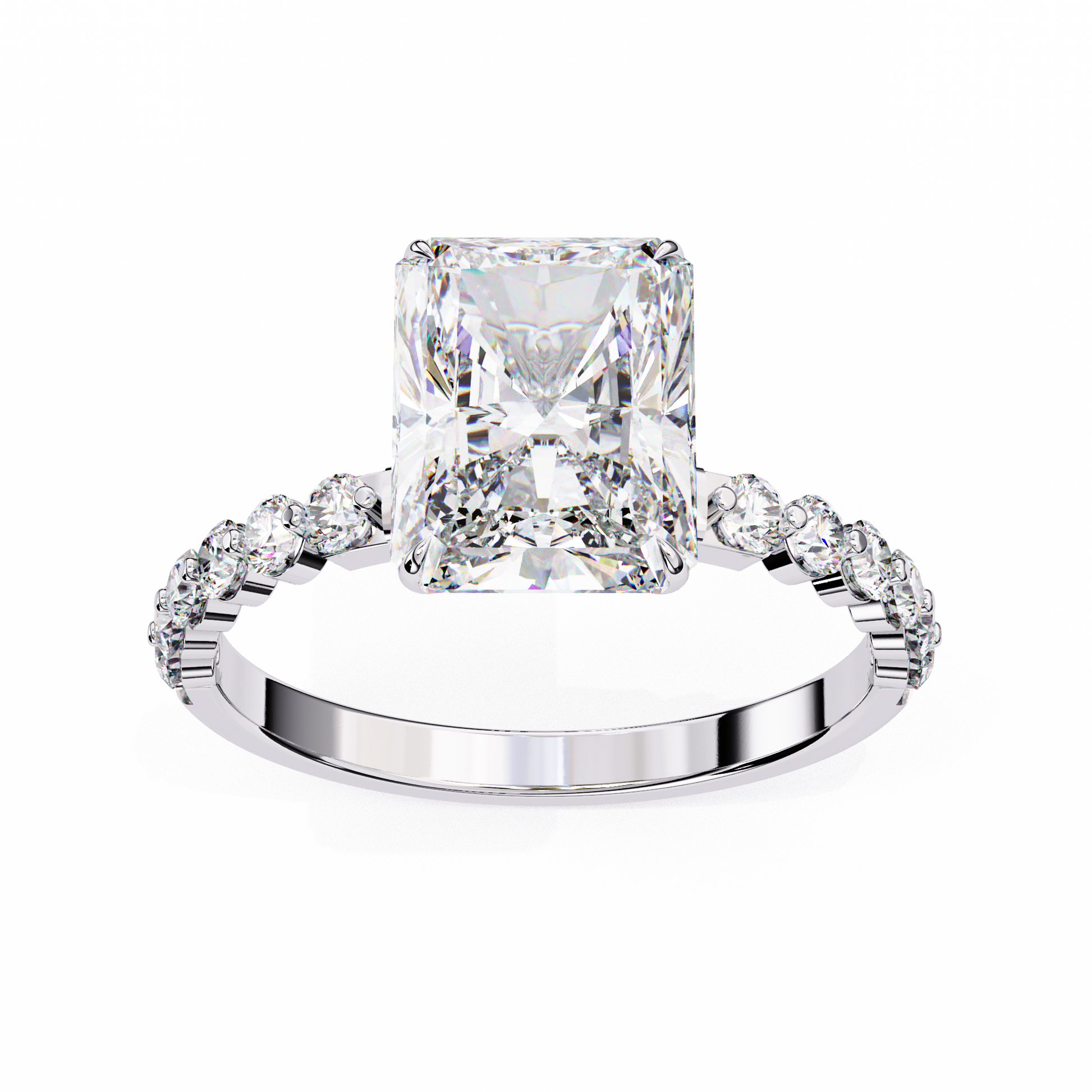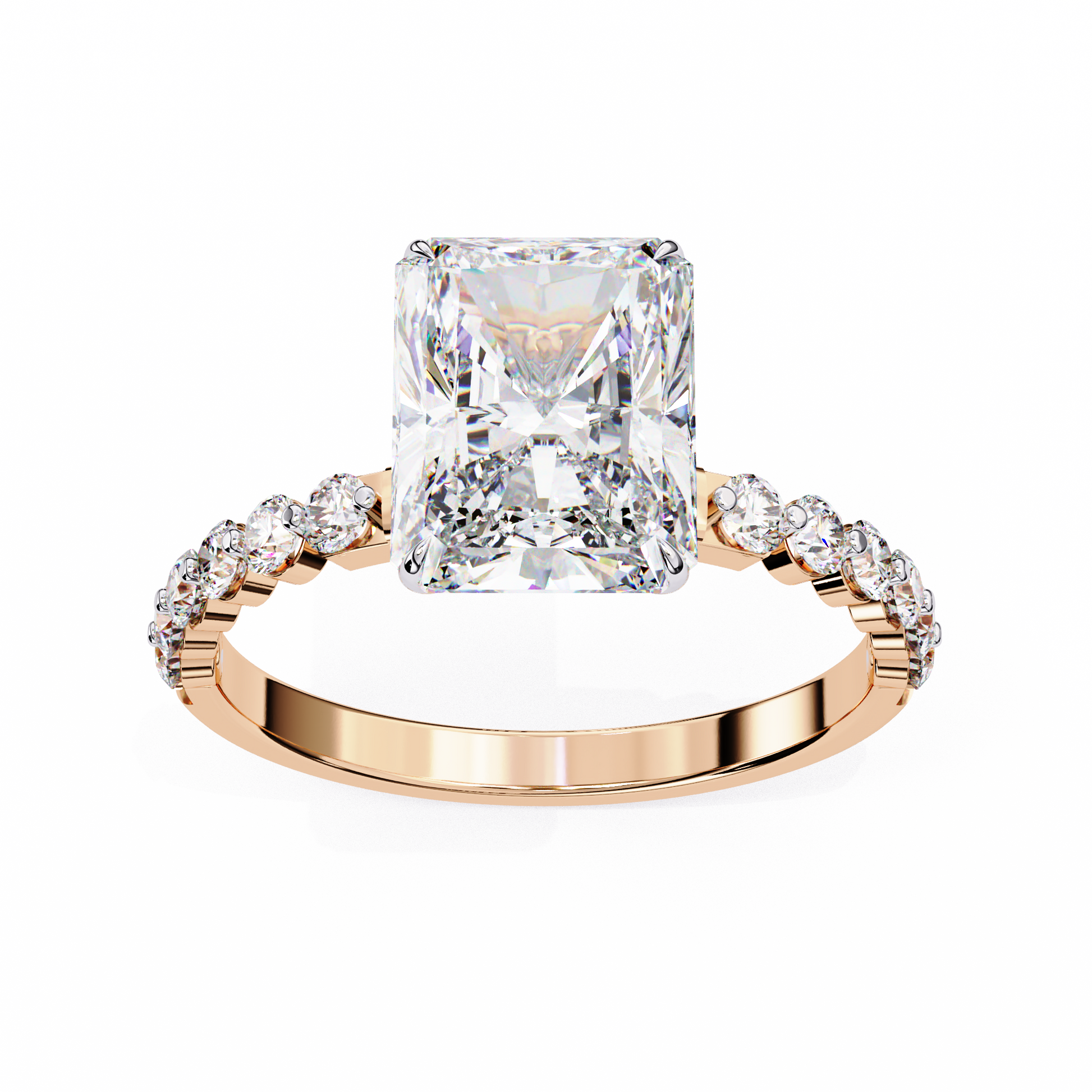 Indulge in luxury with this radiant-cut diamond ring. Featuring a Solitaire set in gold, this ring offers a sophisticated and radiant sparkle.