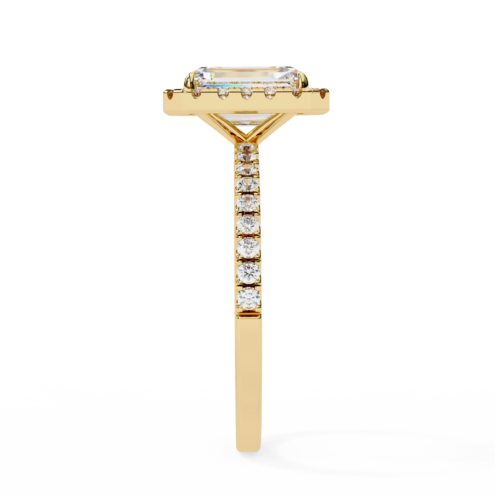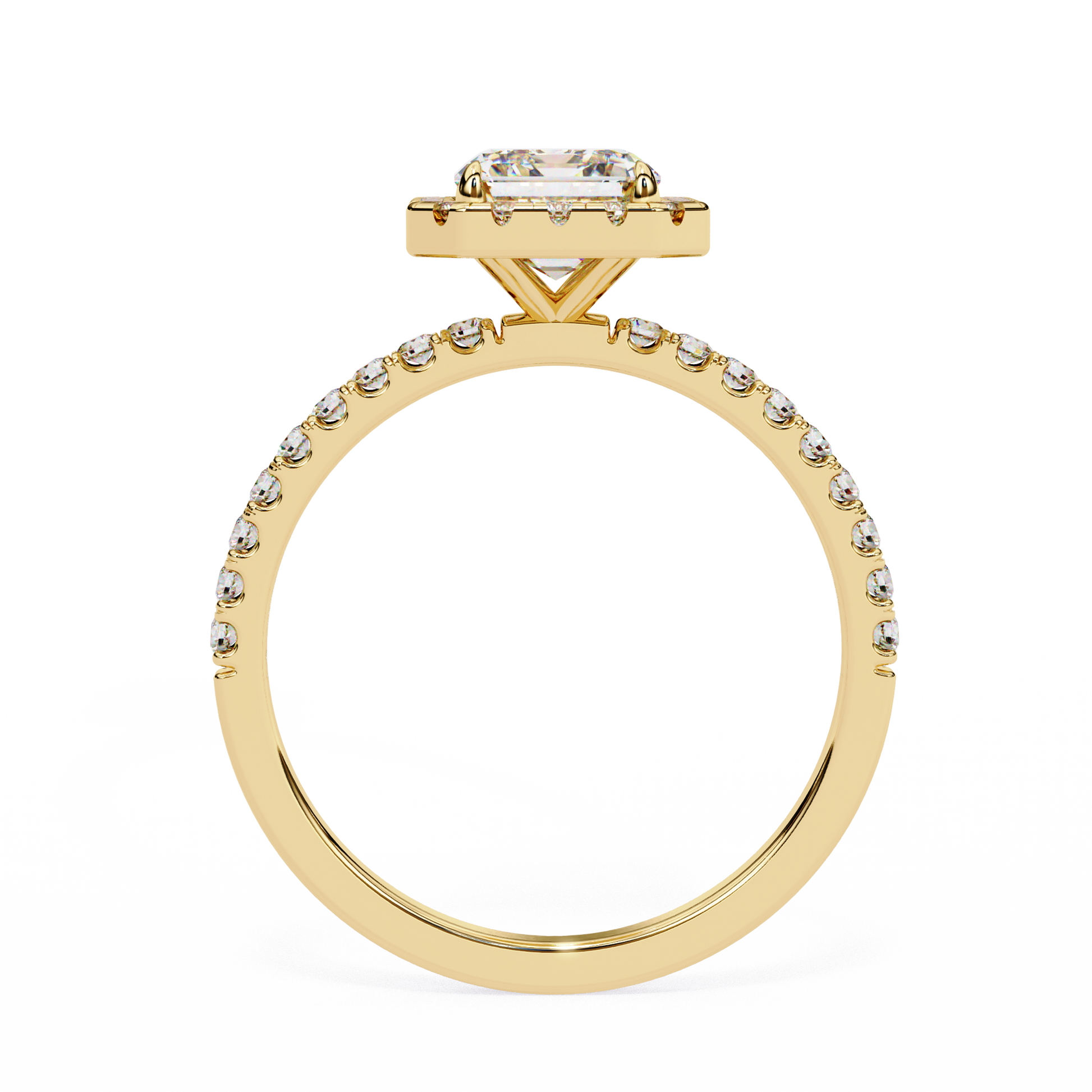 Adorn your finger with this Mira radiant-cut diamond solitaire ring, complete with a halo. Featuring a Solitaire set in gold, this ring offers a sophisticated and radiant sparkle.