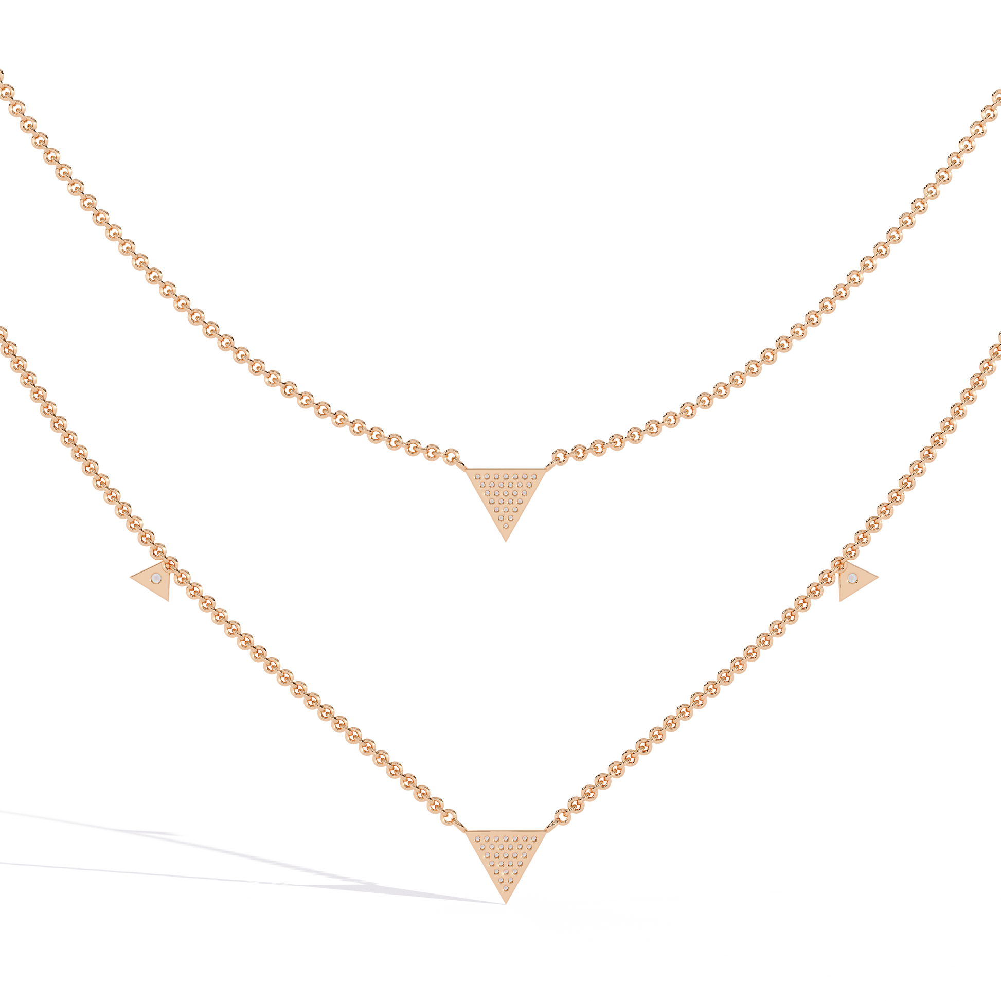 Add a touch of geometric flair with this necklace, featuring trillion diamonds. Crafted in 14k gold with VVS-EF diamond quality, this necklace offers a unique and sophisticated sparkle.
