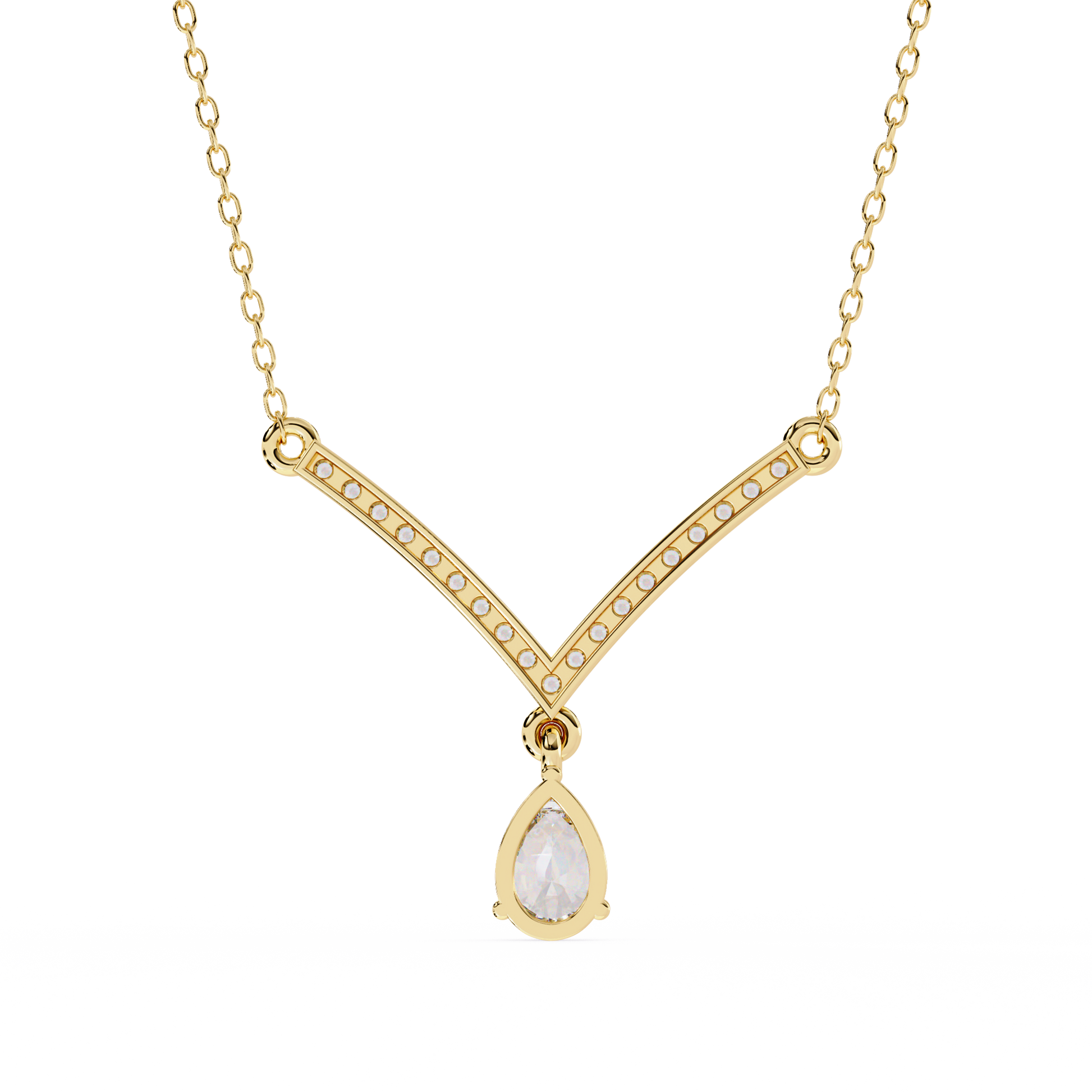 Elevate your style with this pear-drop diamond V necklace. Crafted in 14k gold with VVS-EF diamond quality, this necklace offers a sophisticated and radiant sparkle.