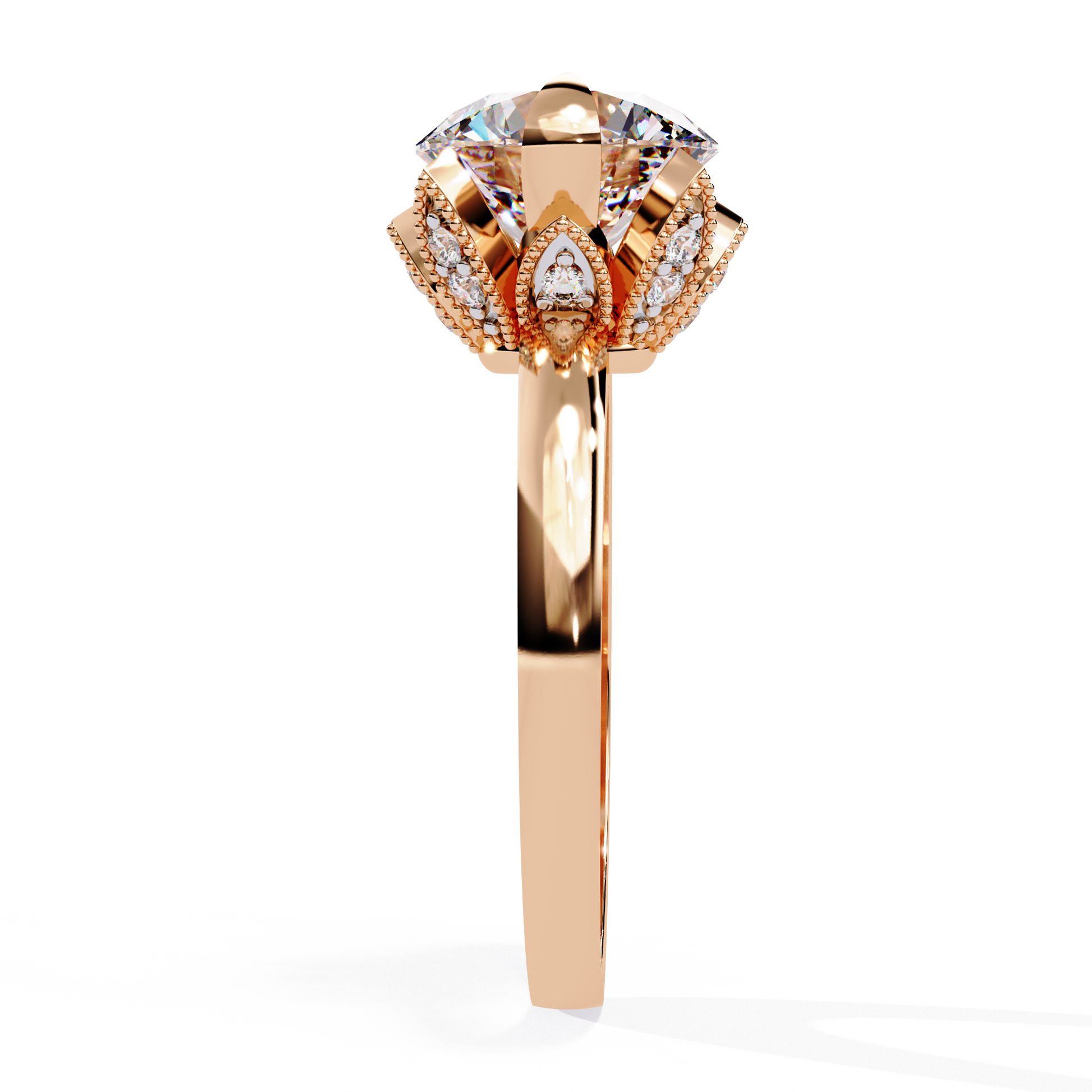 Feel like royalty with this glorious halo engagement ring. Showcasing a radiant center stone, it is beautifully set in 14k rose gold, and will evoke a sense of graceful elegance and joy.