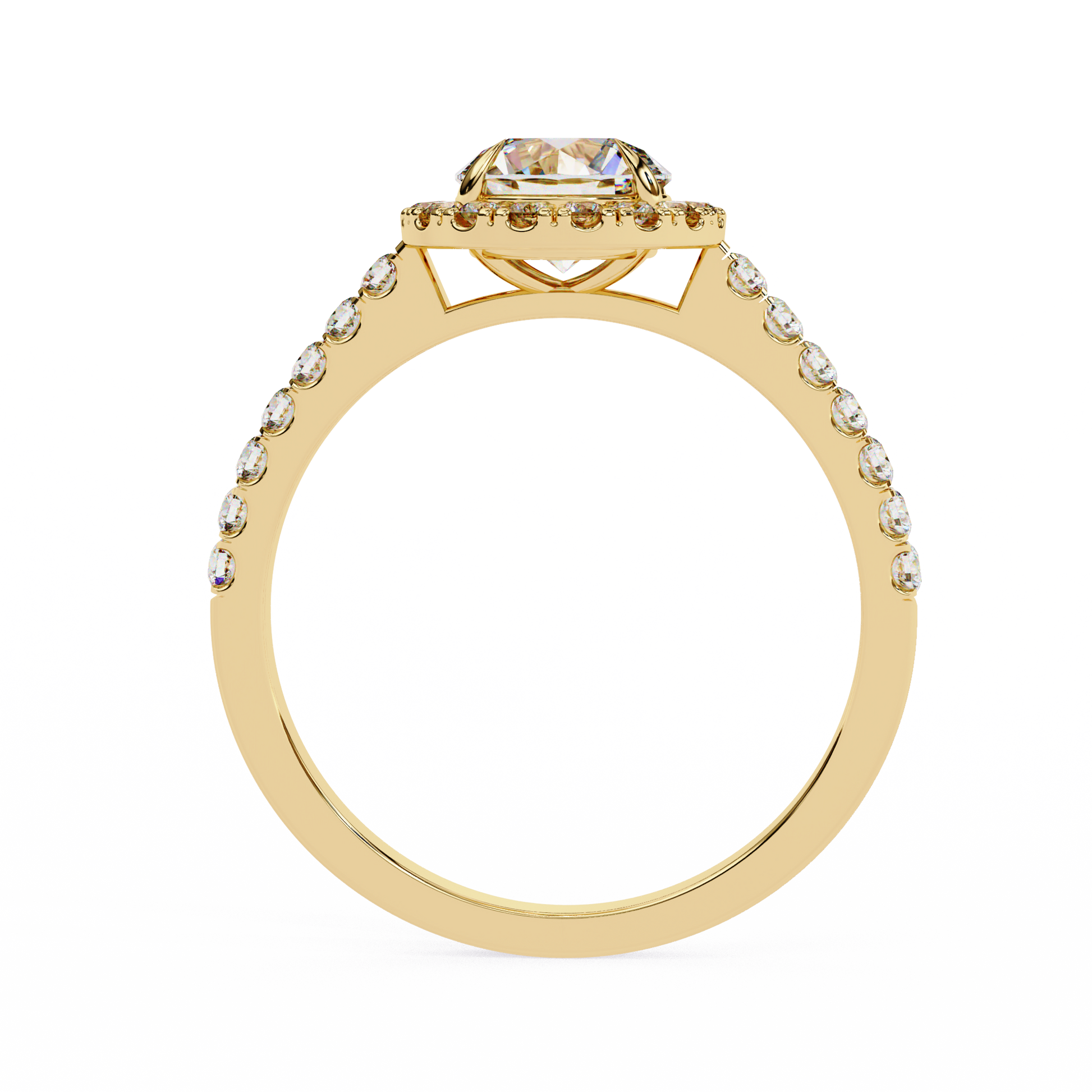 Celebrate your everlasting love with this Primrose Seamless Diamond Halo Engagement Ring, set in gold. It showcases a halo of diamond with a stunning center solitaire, ensuring you make a graceful impression.