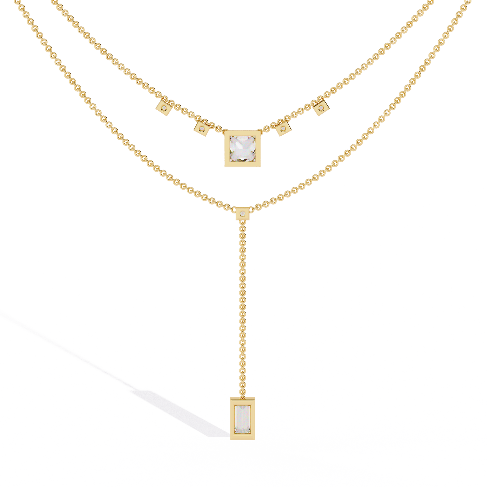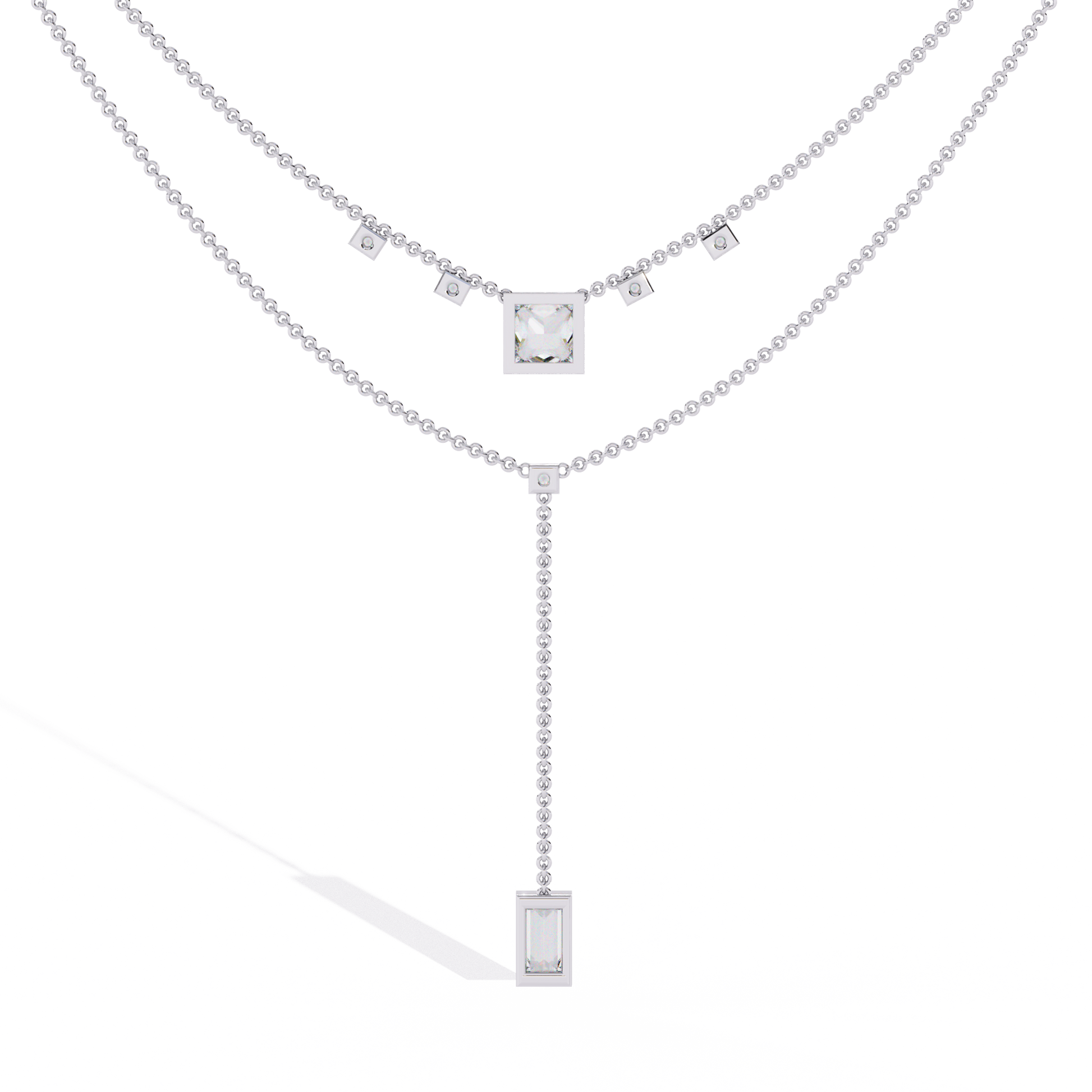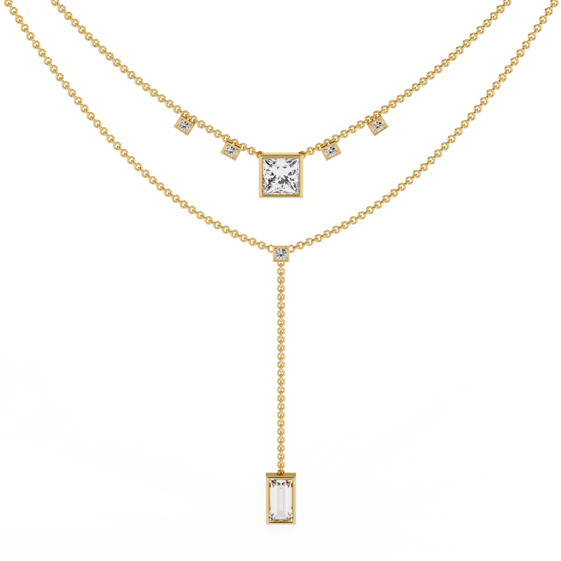 Add a touch of modern elegance with this princess-cut diamond Y necklace. Crafted in gold with diamond, this necklace offers a sophisticated and radiant sparkle.