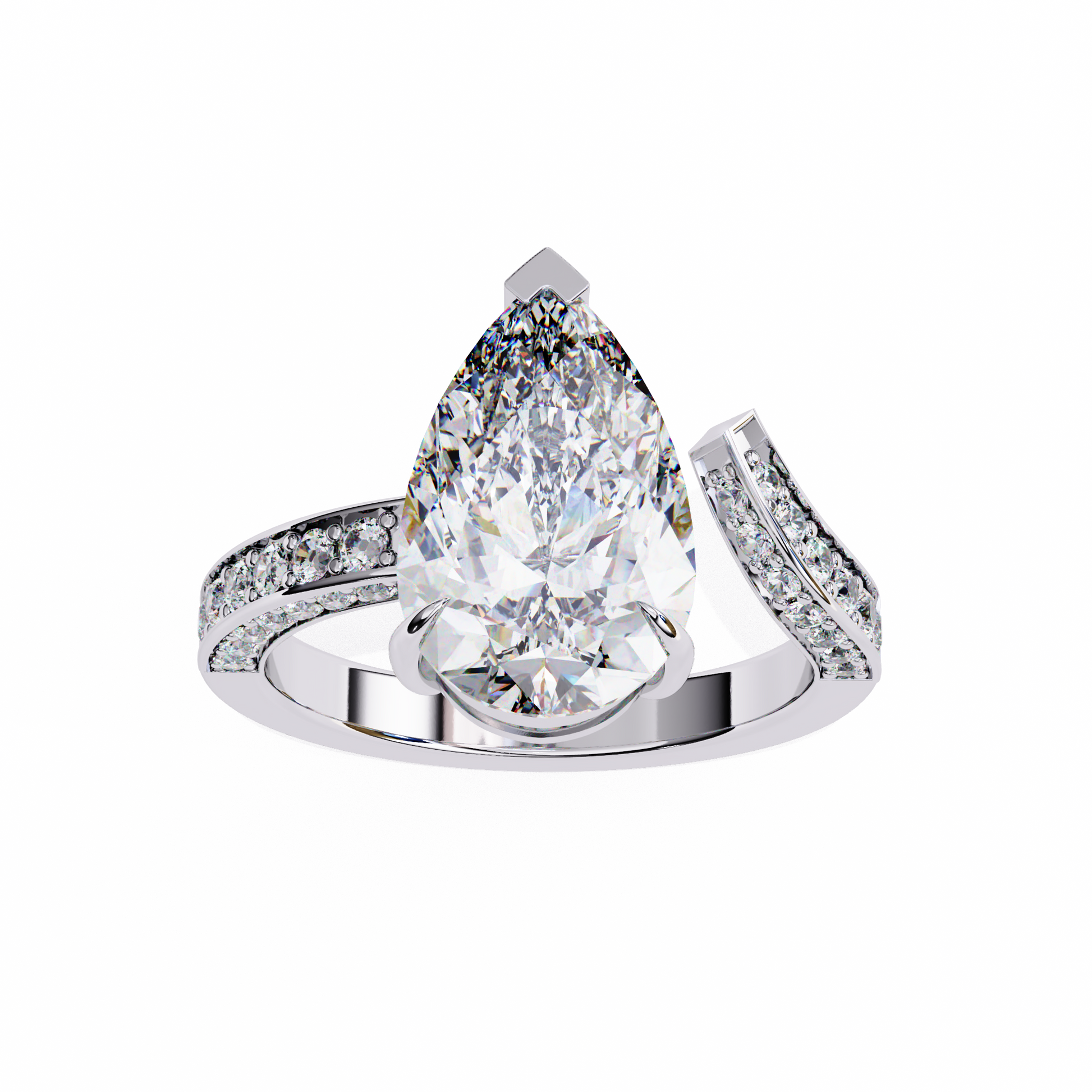 Add a touch of modern elegance with this split-shank pear-shaped diamond ring. Featuring a Solitaire set in gold, this ring offers a sophisticated and radiant sparkle.