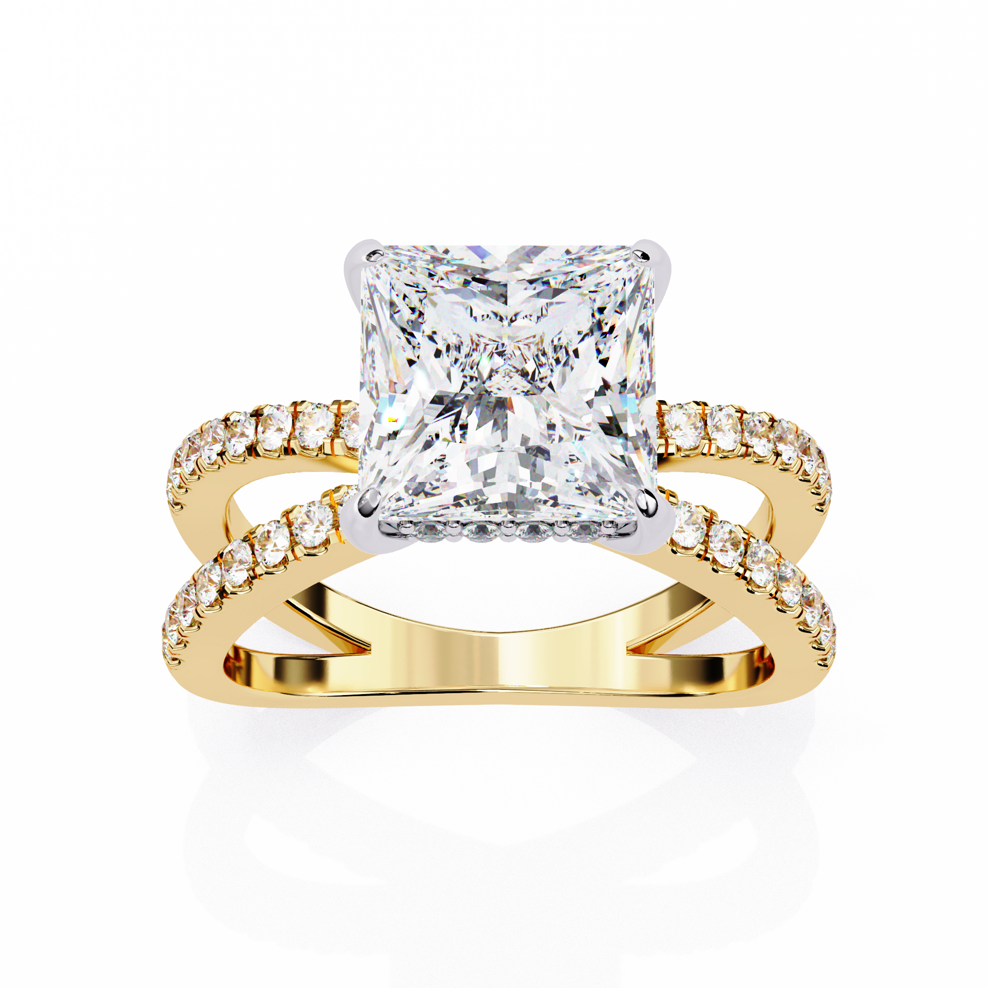Add a modern touch with this split-shank princess solitaire ring. Featuring a Solitaire set in gold, this ring offers a sophisticated and radiant sparkle.