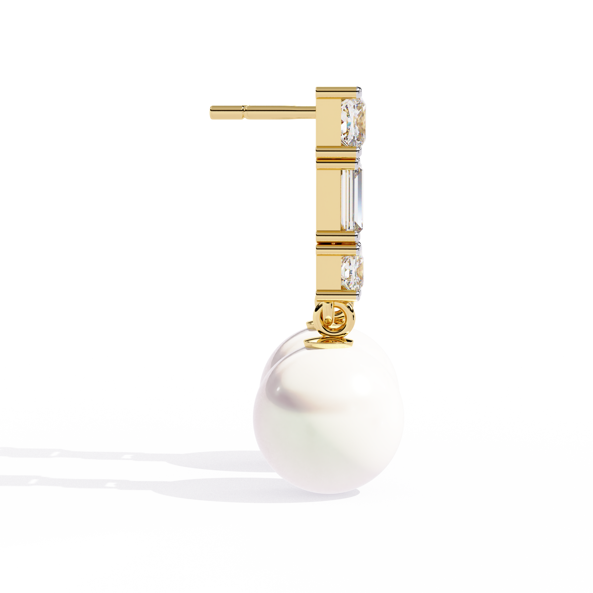Experience elegance with these square-cut diamond pearl drop earrings. Crafted in gold with diamond quality, these earrings offer a sophisticated and radiant sparkle, perfect for adding a touch of classic charm.