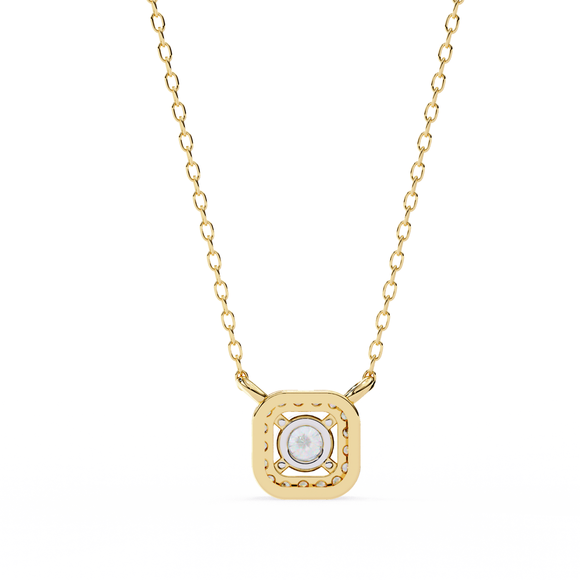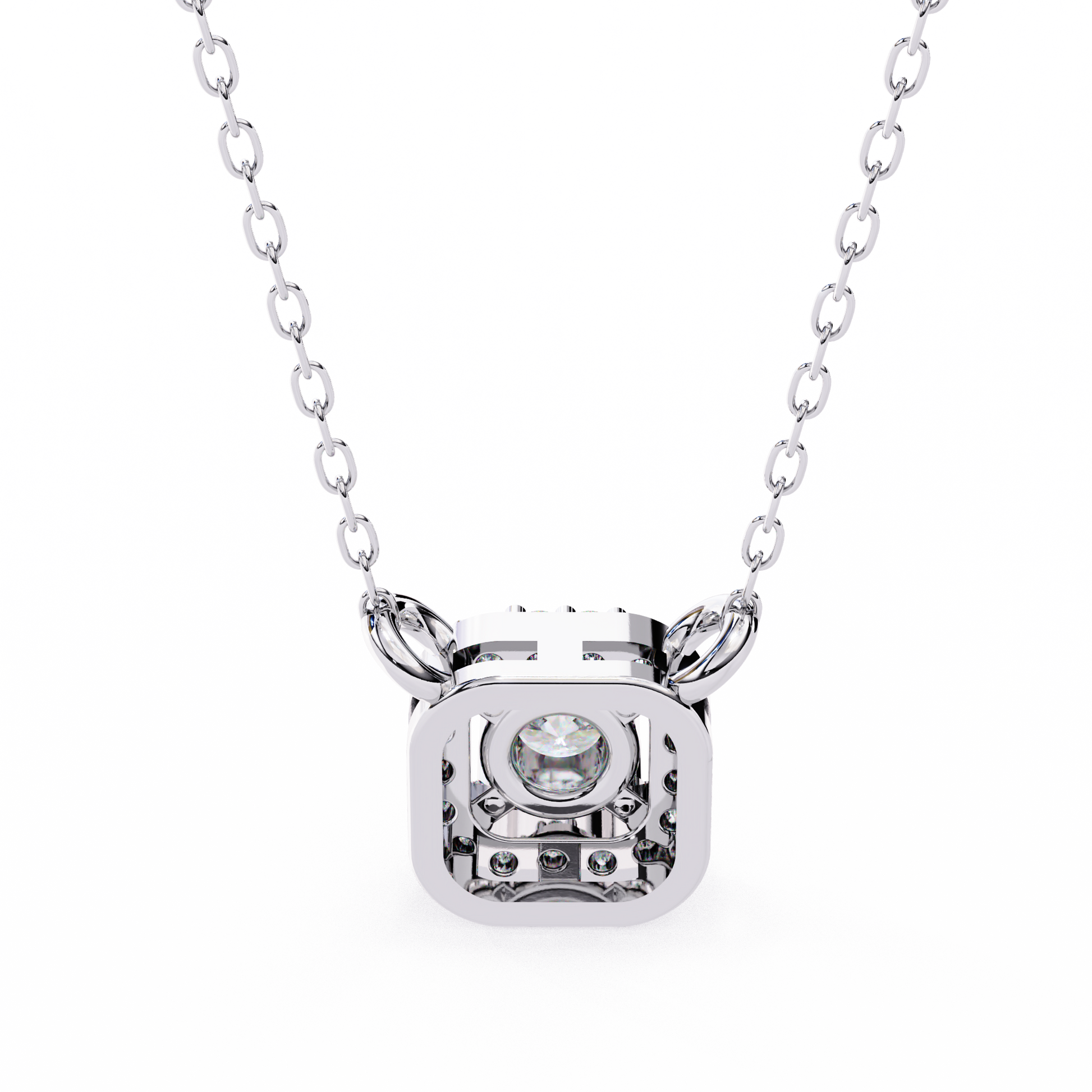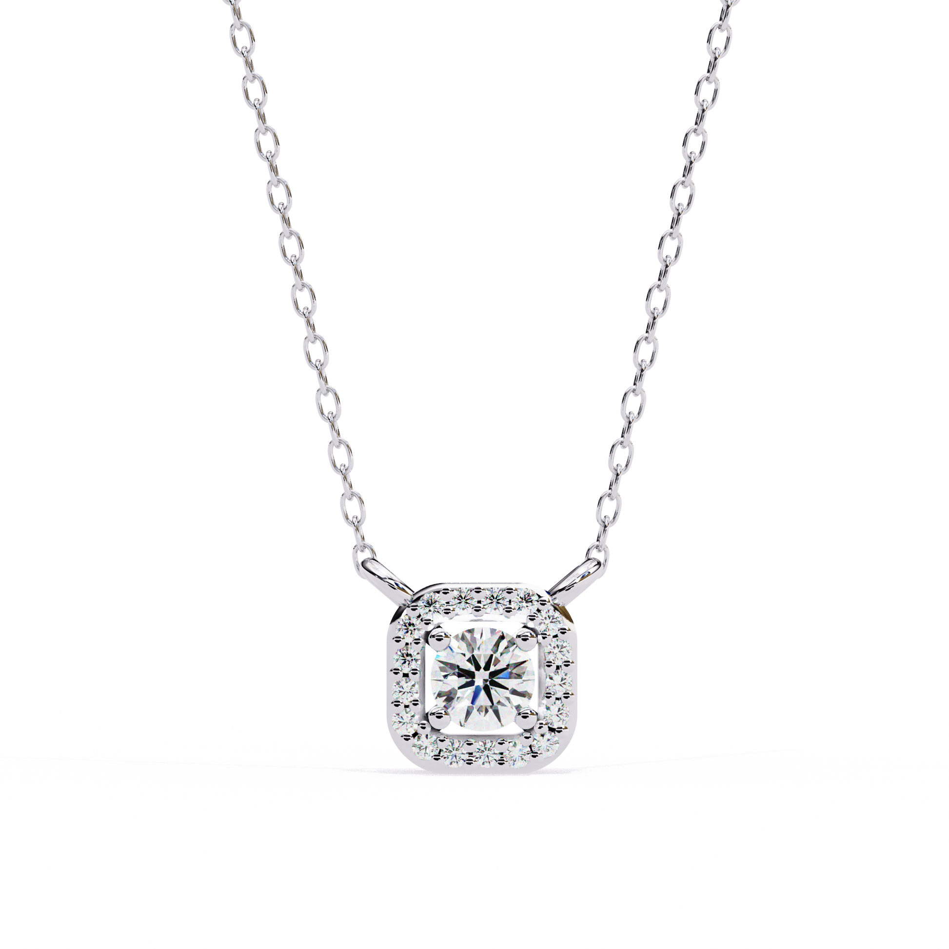 Add a touch of modern elegance with this square halo diamond pendant necklace. Crafted in gold with diamond, this necklace offers a sophisticated and radiant sparkle.