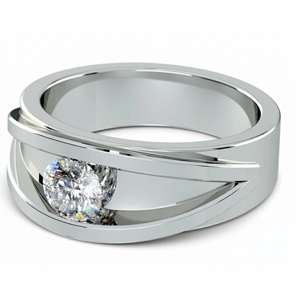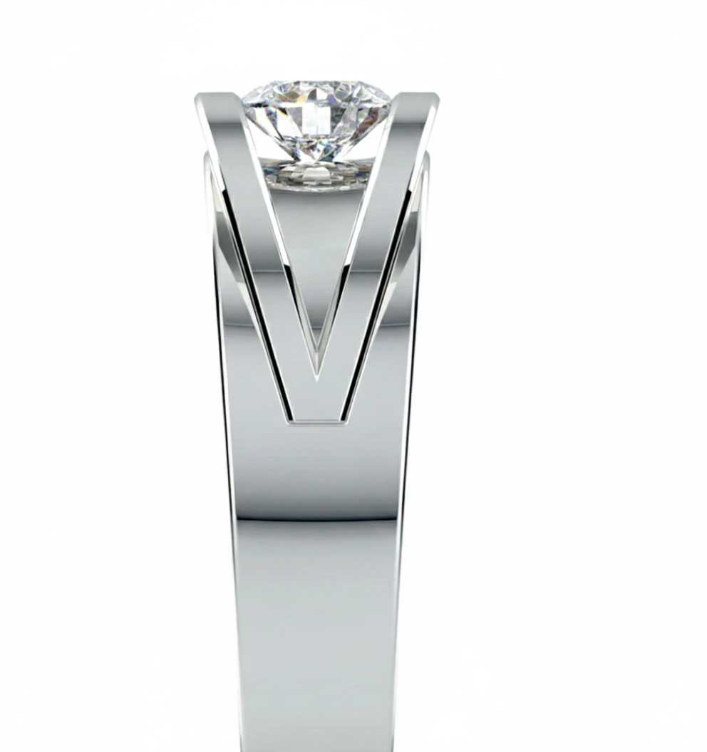 The Streamline Cascade Pear Solitaire is a sculptural celebration of modern elegance, distinguished by its exquisite pear-shaped diamond set horizontally in a sleek, full-bezel cradle. Crafted from highly polished white gold, the substantial, contoured band flows inward, mirroring the graceful lines of the tear-drop stone and providing a seamless, protective frame. This fluid design maximizes the diamond's unique brilliance while maintaining a clean, contemporary aesthetic, resulting in a unique statement piece that is both grounded in structure and ethereally luminous.
