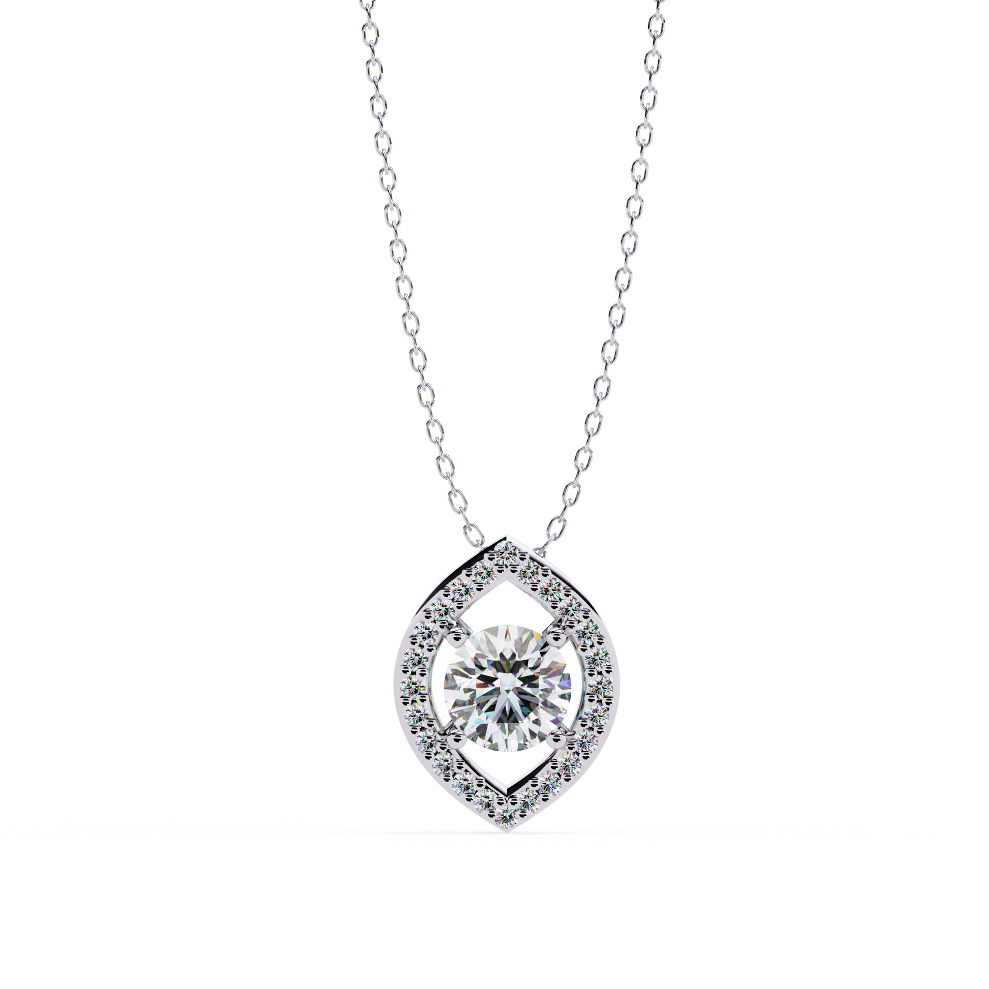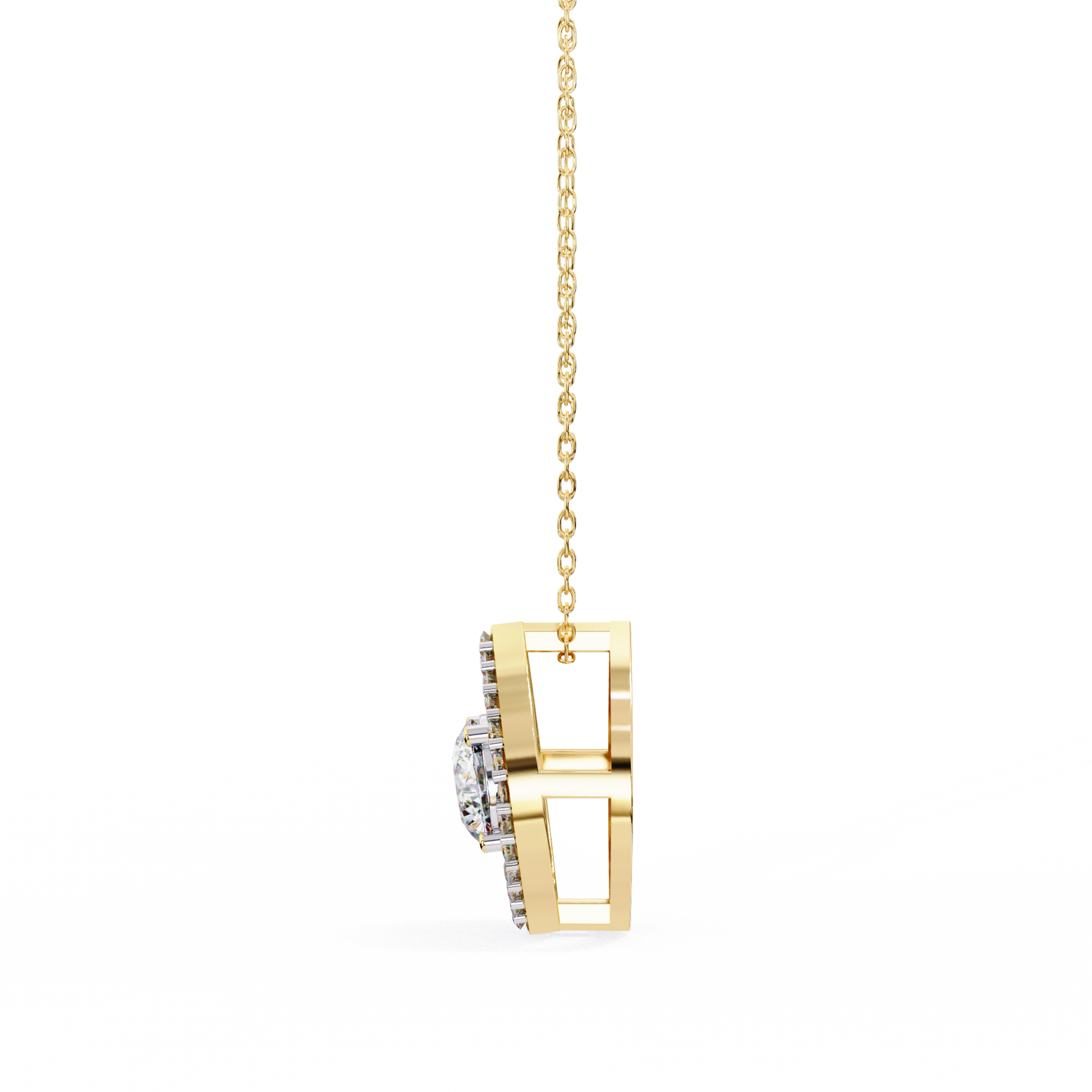 Experience timeless beauty with this oval diamond halo pendant. Crafted in gold with VVS-EF diamond quality, this pendant offers a sophisticated and radiant sparkle.