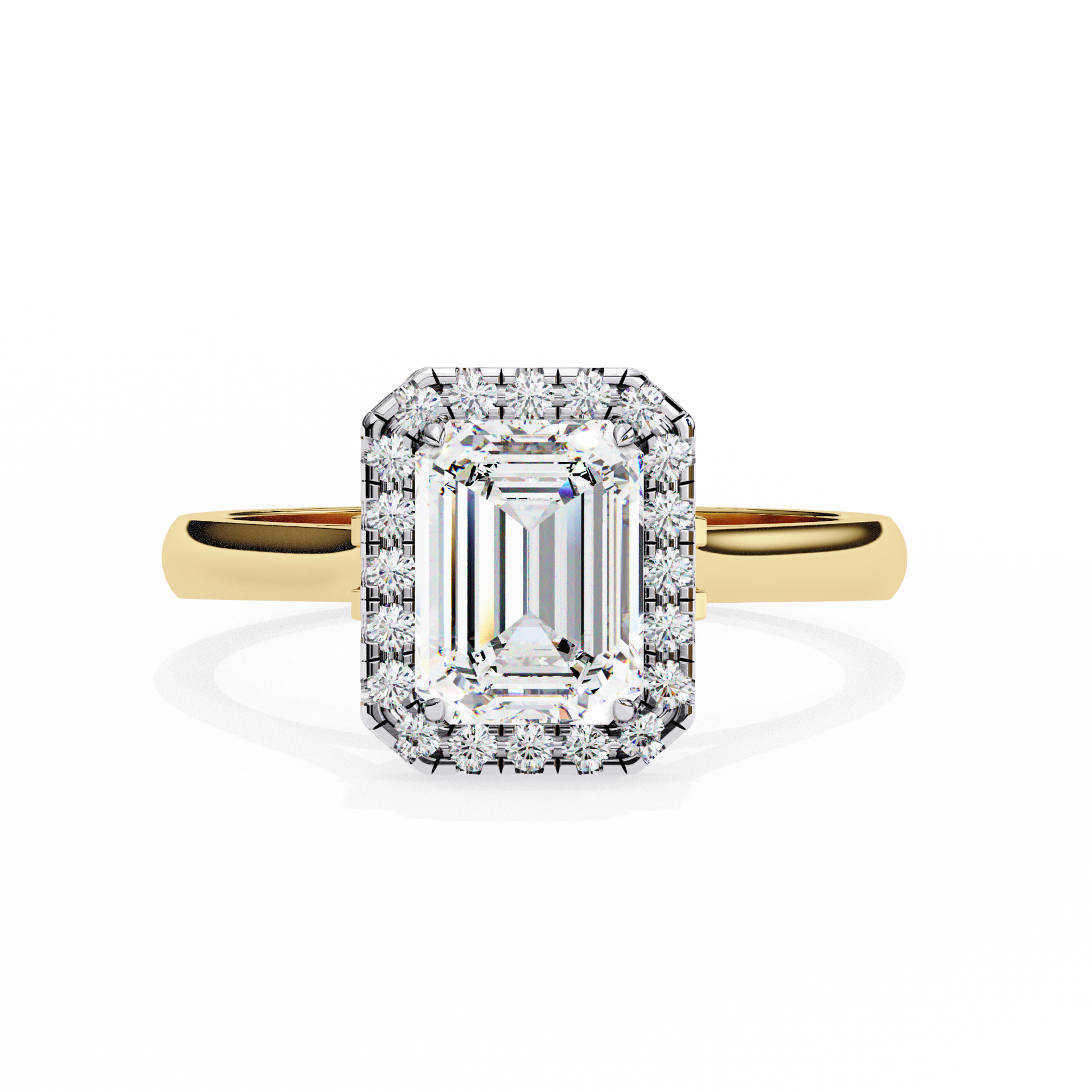 Experience vintage charm with this timeless rectangular emerald halo diamond ring. Featuring a 0.5ct center stone set in 14k gold, this ring offers a sophisticated and elegant sparkle.